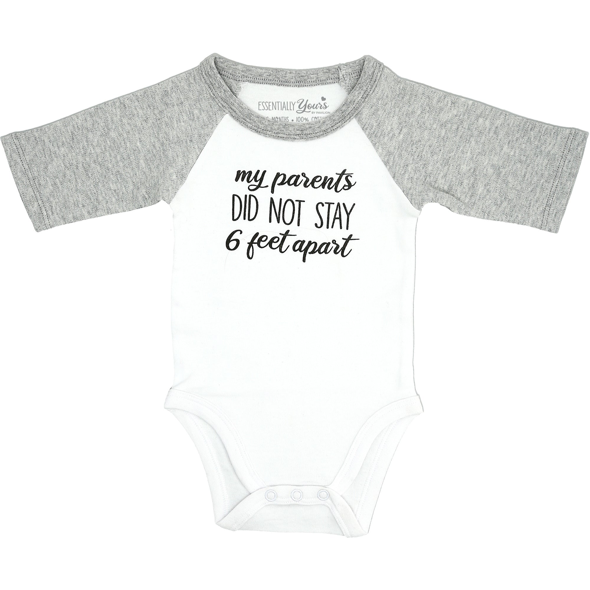 6 Feet Apart 0-6 Months Bodysuit 3/4 Length Heathered Gray Sleeve