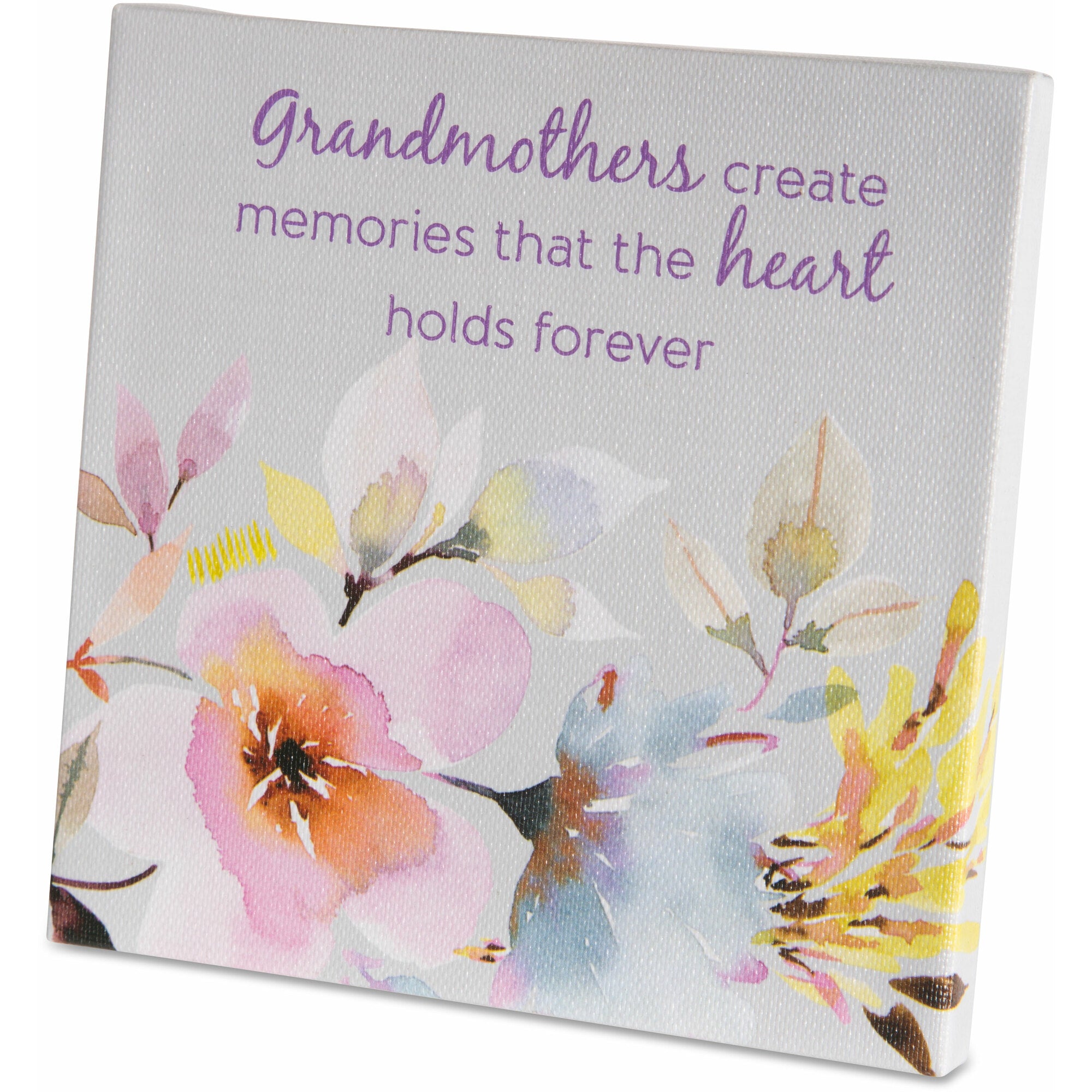 - IN-HOUSE DESIGN: Designed by Stephanie Ryan, "Grandmothers Create Memories That The Heart Holds Forever" text is printed onto plaque, as is the accompanying floral detail.