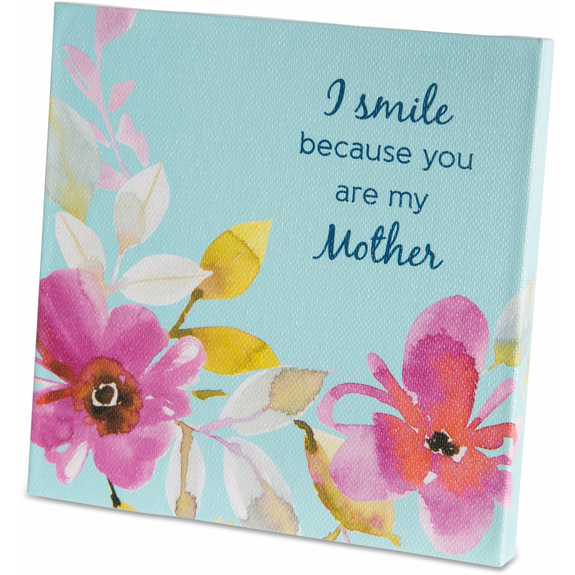 - IN-HOUSE DESIGN: Designed by Stephanie Ryan, "I Smile Because You Are My Mother" text is printed onto plaque, as is the accompanying floral detail.