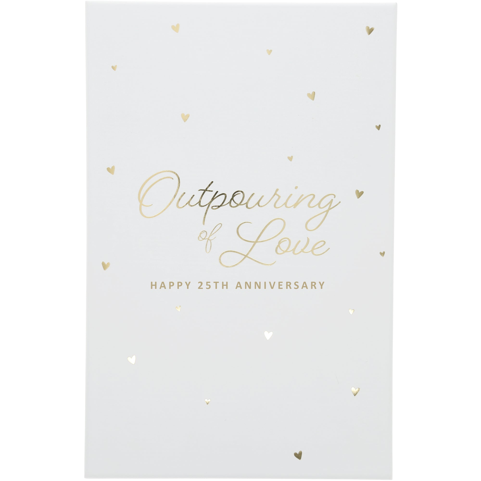 - PREMIUM QUALITY: This wonderful set of champagne flutes is crafted from glass with sparkly clear crystal gems within the stemmed glassware. The black background white gift box has heat-stamped hearts on the "Happy 25th Anniversary" lid and a wrapped belly band with a "Cheers!" sentiment.