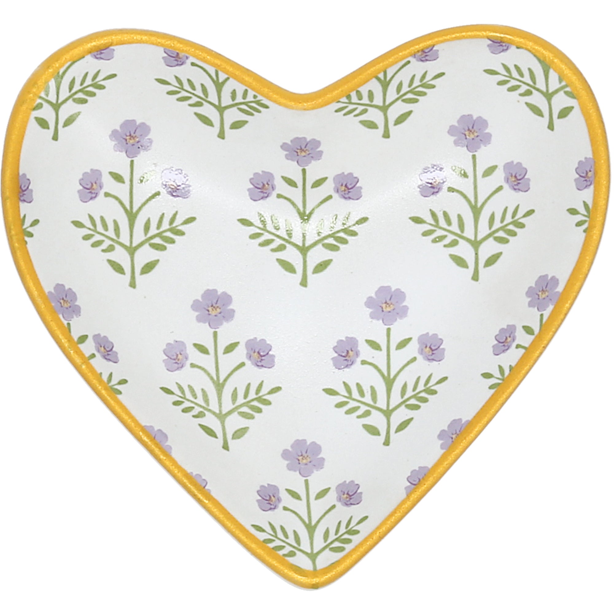 - PREMIUM QUALITY: This elegant 2-piece set includes a heart-shaped trinket dish and a pair of 5mm sterling silver cubic zirconia stud earrings. The dish is made from durable stoneware with a matte white glaze, hand-painted purple floral decals, and a gold-colored rim for added sophistication. The earrings feature hypoallergenic posts and sparkling stones that catch the light beautifully, creating a timeless, heartfelt keepsake.