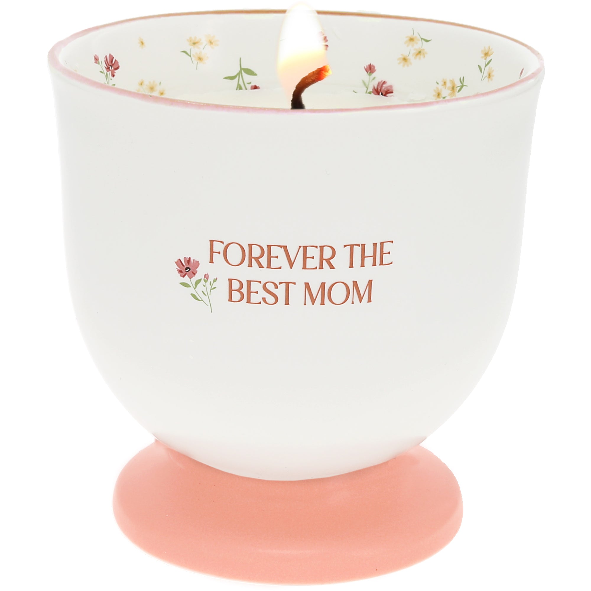- PREMIUM QUALITY: A 13 oz 100% soy-wax candle housed in a elegant stoneware pedestal vessel with a matte exterior glaze, glossy interior, and embossed text reading “Forever the Best Mom.” Features a wax-reveal interior pattern of soft peach florals that emerges as the candle burns.