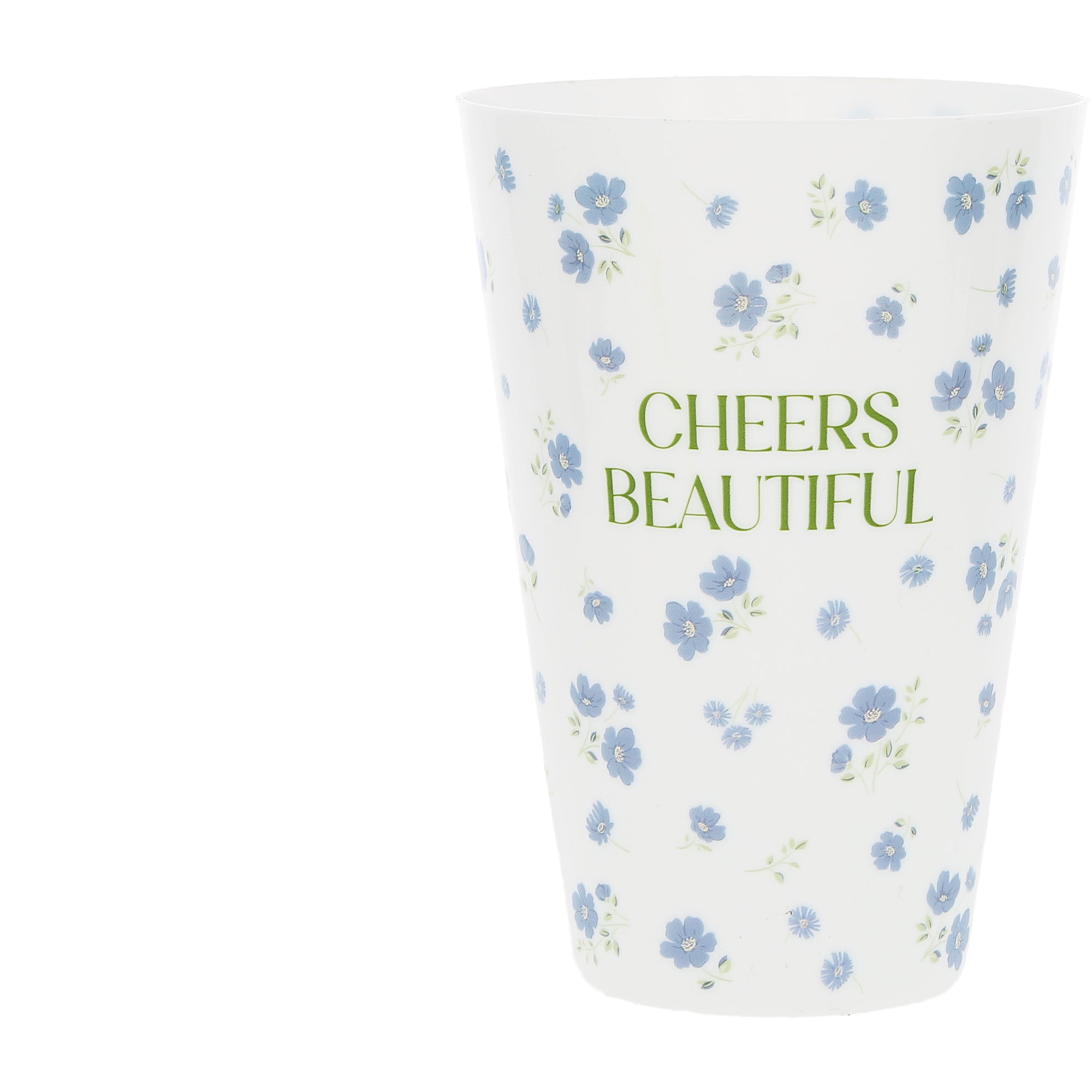 - IN-HOUSE DESIGN: Part of the Petals of Love collection, each cup features delicate full-wrap floral patterns paired with the uplifting phrase “Cheers Beautiful.” Designed with Pavilion’s signature attention to color and composition, these prints bring an elegant yet cheerful aesthetic to your table setting. The floral designs were inspired by nature’s gentlest blooms—symbolizing kindness, friendship, and self-love—making them as meaningful as they are beautiful.