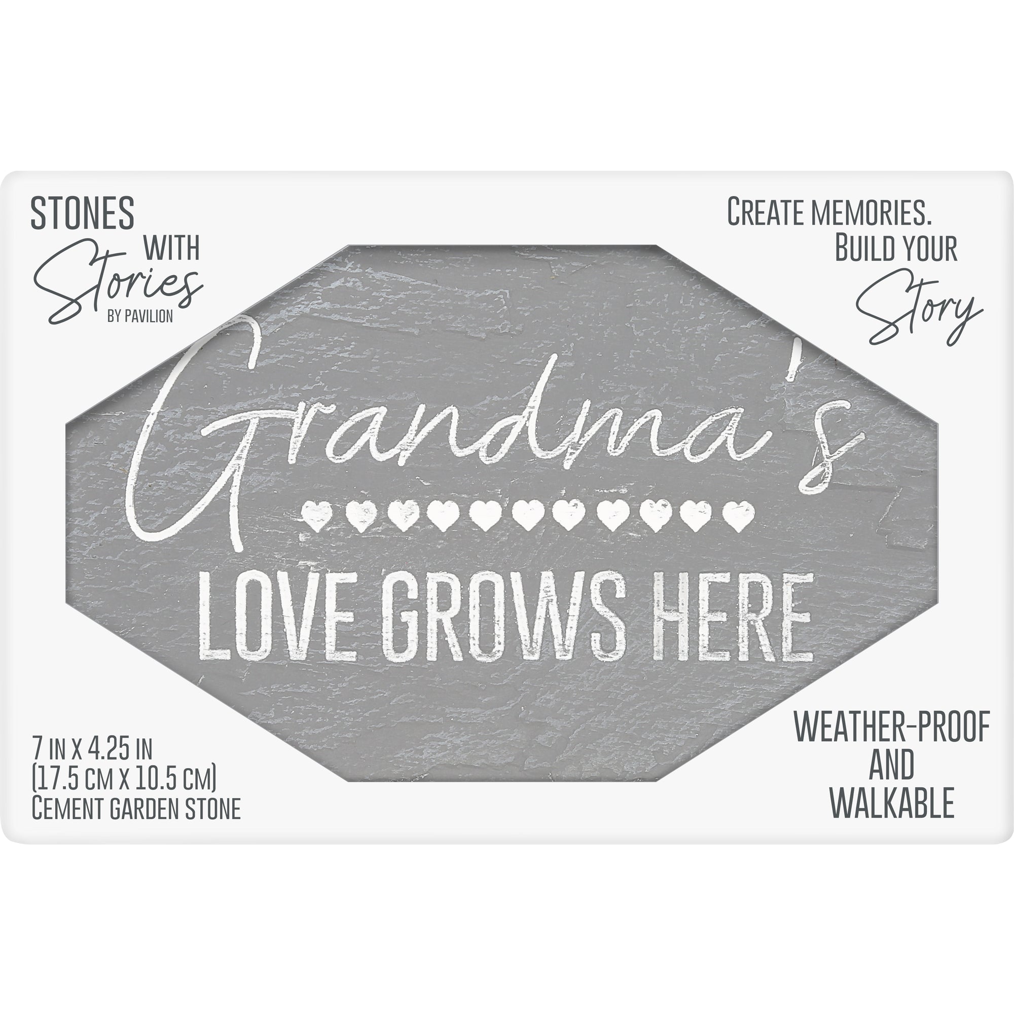 - IN-HOUSE DESIGN: This gray garden stone has a textured surface and rounded edges. It features a row of hearts and the heartfelt sentiment "Grandma's Love Grows Here." This charming stone adds a touch of warmth and love to any outdoor or indoor space, serving as a meaningful reminder of the welcoming atmosphere within your home.