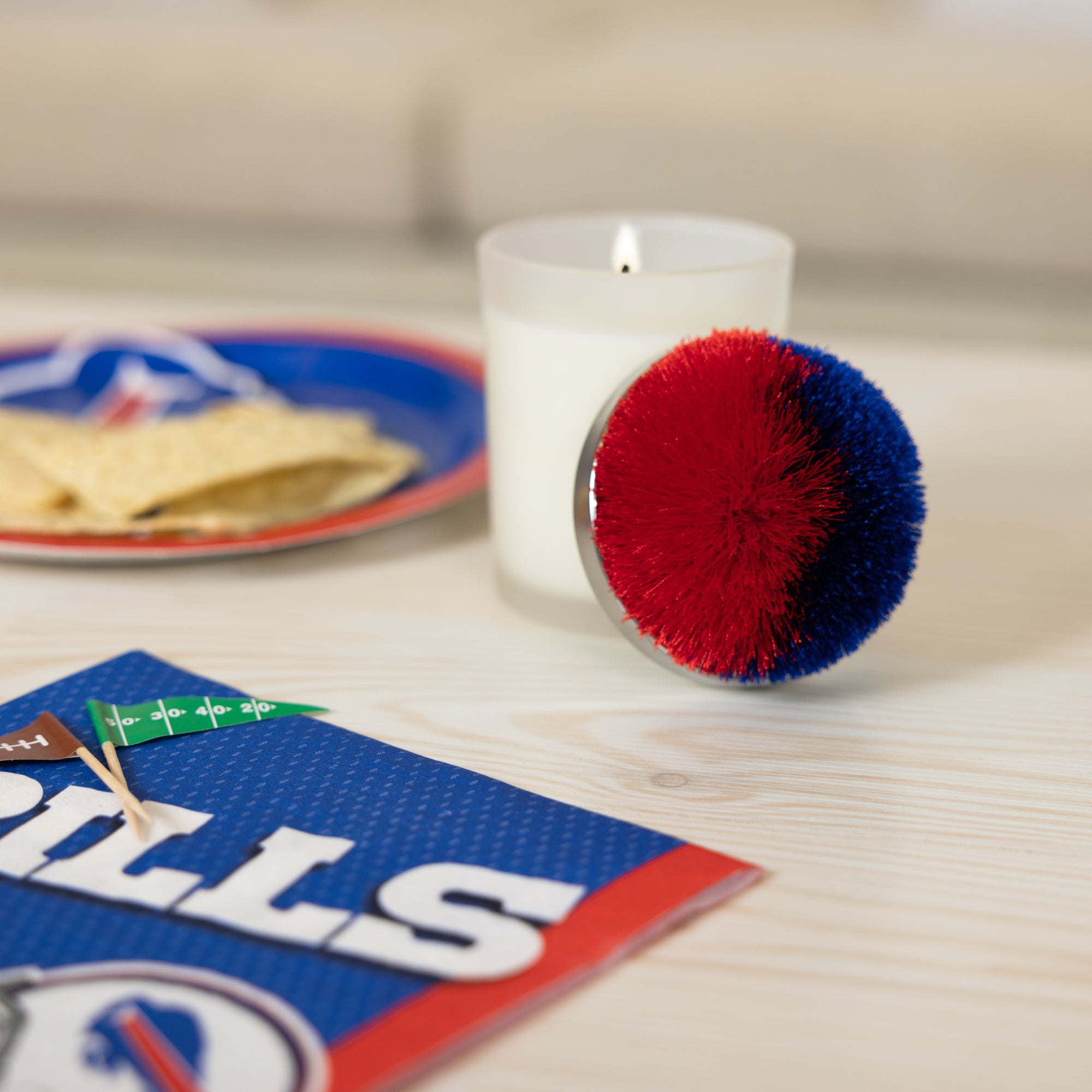Red & Blue 2.75" Pom Pom Lid