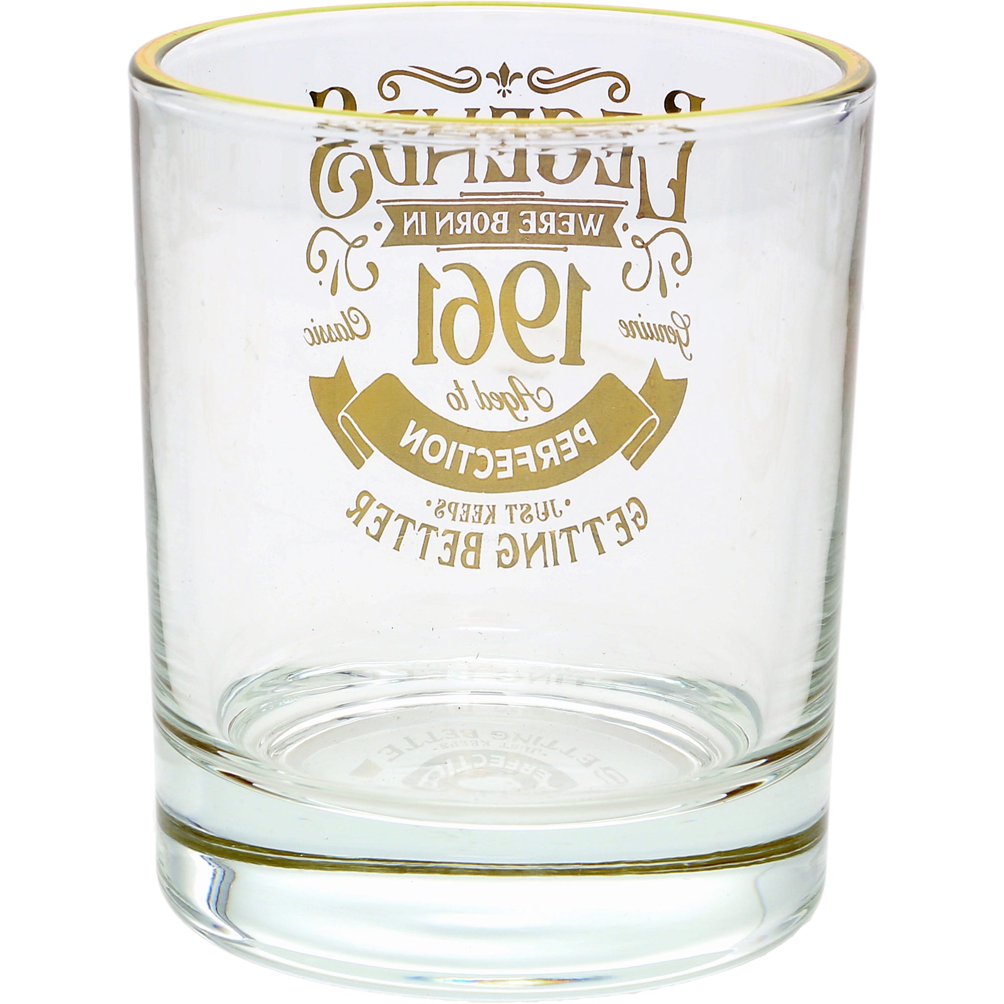 - IN-HOUSE DESIGN: The gold electroplated rim is accompanied by the gold "Legends Were Born In 1961, Genuine Classic, Aged To Perfection, Just Keeps Getting Better" sentiment decal on the front side of the whiskey along with banners and stars.