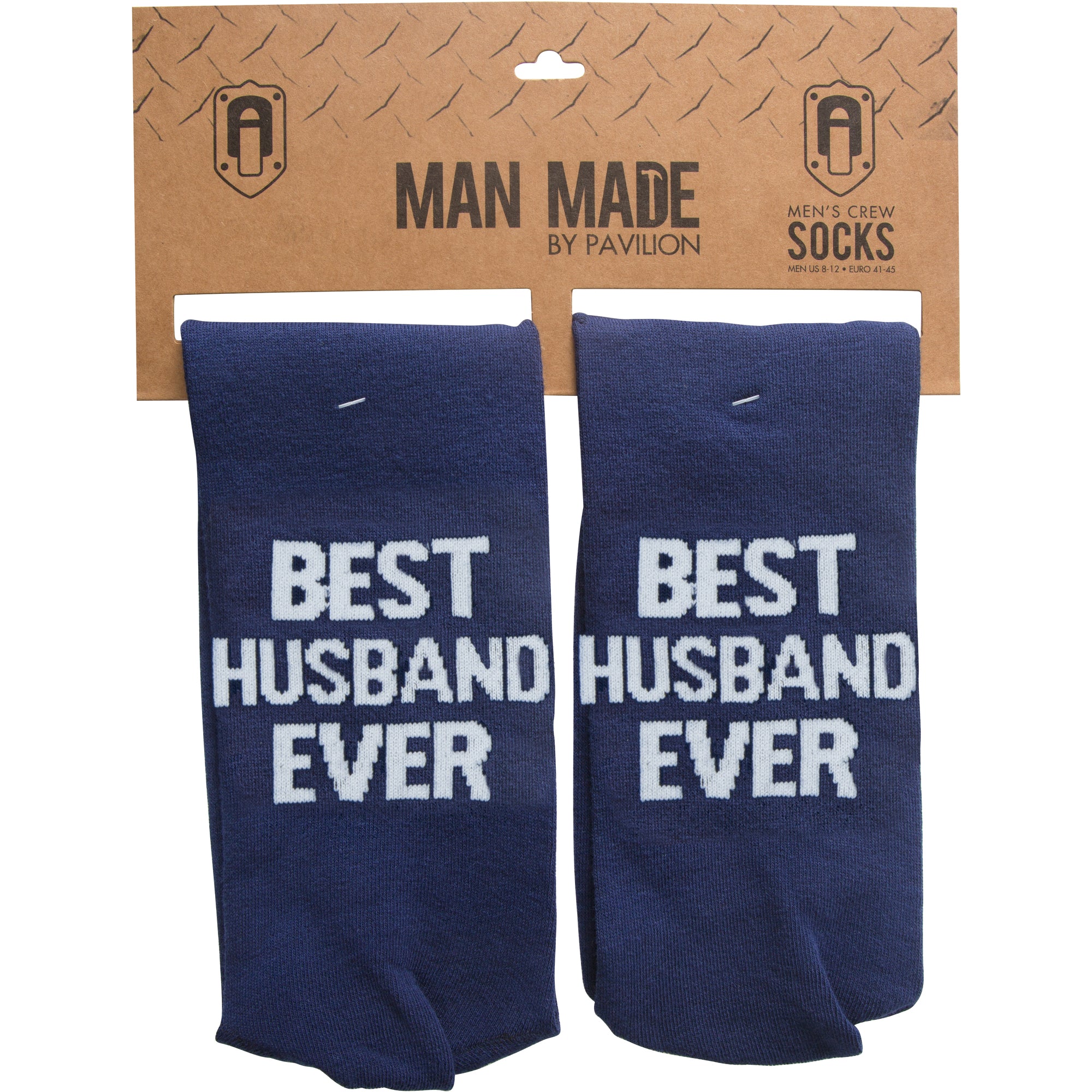 - IN-HOUSE DESIGN: "Best Husband Ever" text is sewn into the base of both socks. Both socks have "Man Made" text sewn into the upper portion of the sock.