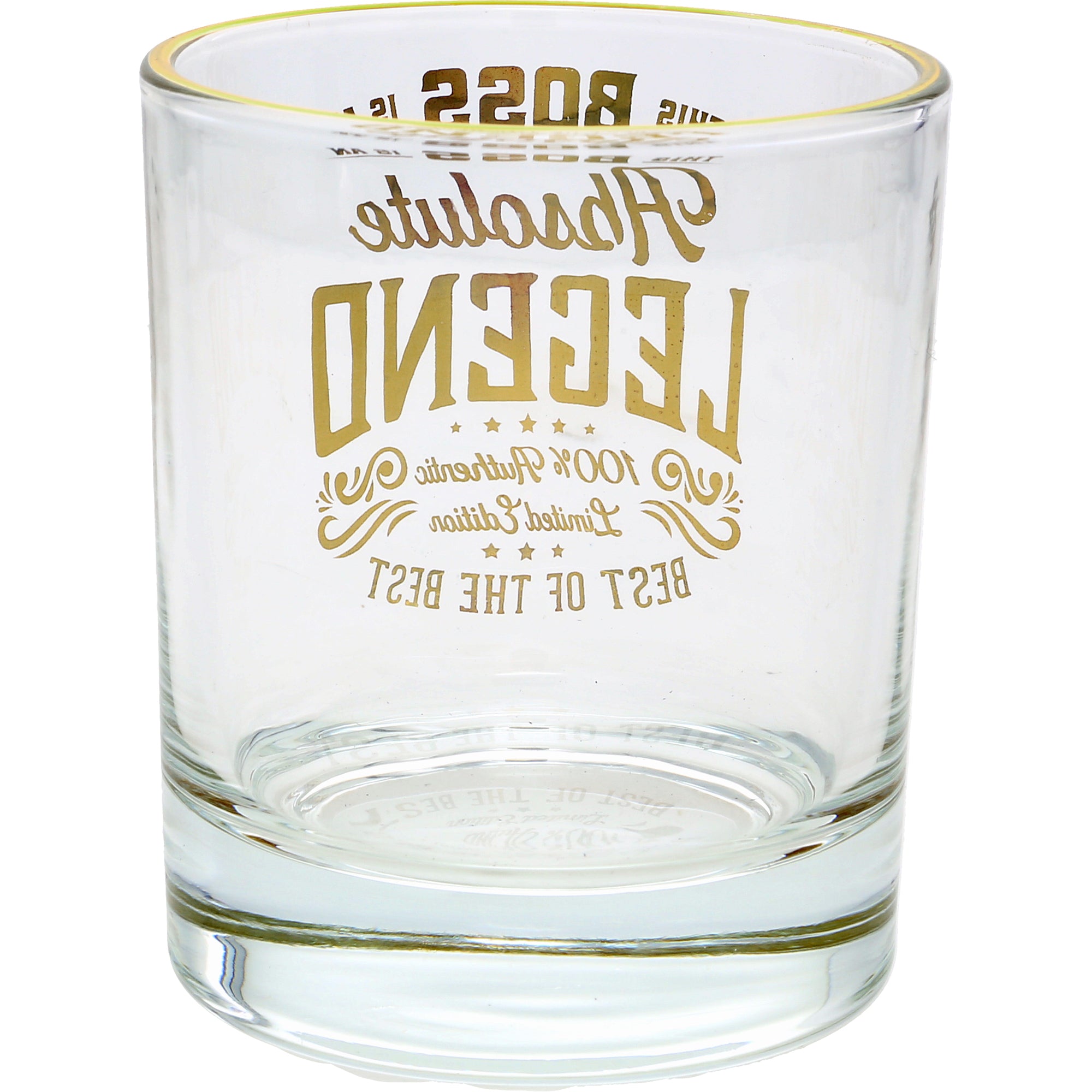 - IN-HOUSE DESIGN: The gold electroplated rim is accompanied by the gold "This Boss Is An Absolute Legend 100% Authentic Limited Edition Best Of The Best" sentiment decal on the front side of the whiskey along with banners and stars. Glassware with a refined, aesthetically pleasing look.