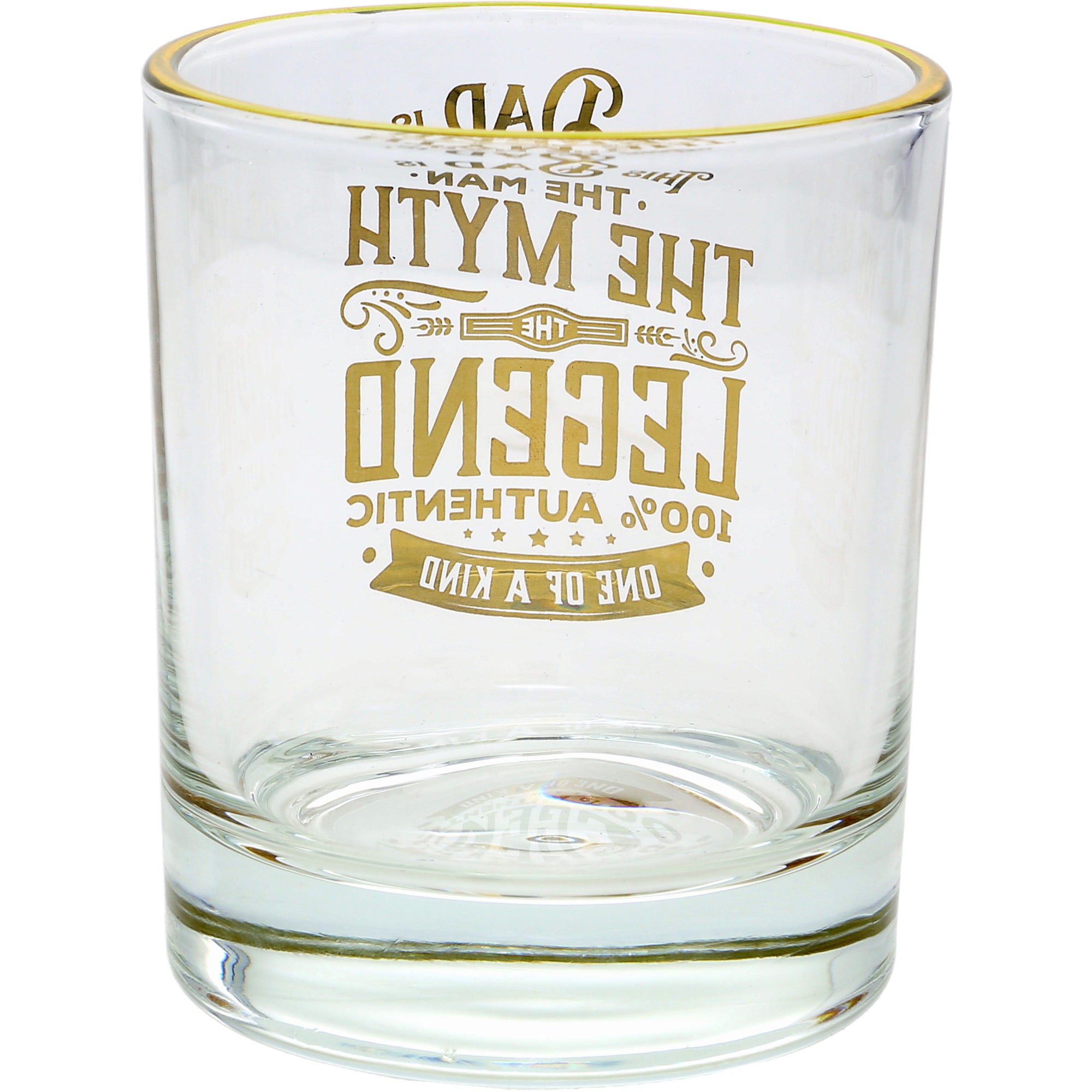 - IN-HOUSE DESIGN: The gold electroplated rim is accompanied by the gold "This Dad Is The Man The Myth The Legend 100% Authentic One Of A Kind" sentiment decal on the front side of the whiskey along with banners and stars. Glassware with a refined, aesthetically pleasing look.