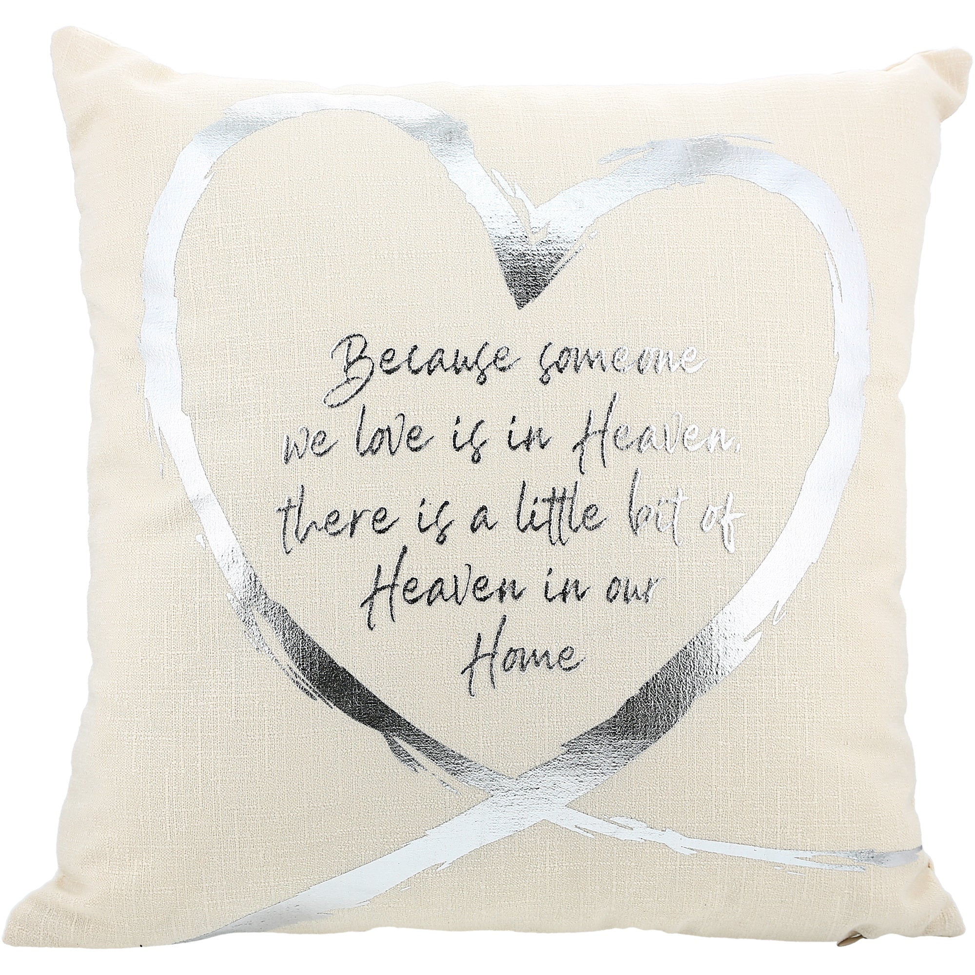 - IN-HOUSE DESIGN: "Because Someone We Love Is In Heaven, A Little Bit Of Heaven Is In Our Home" text is applied to the front of the pillow.
