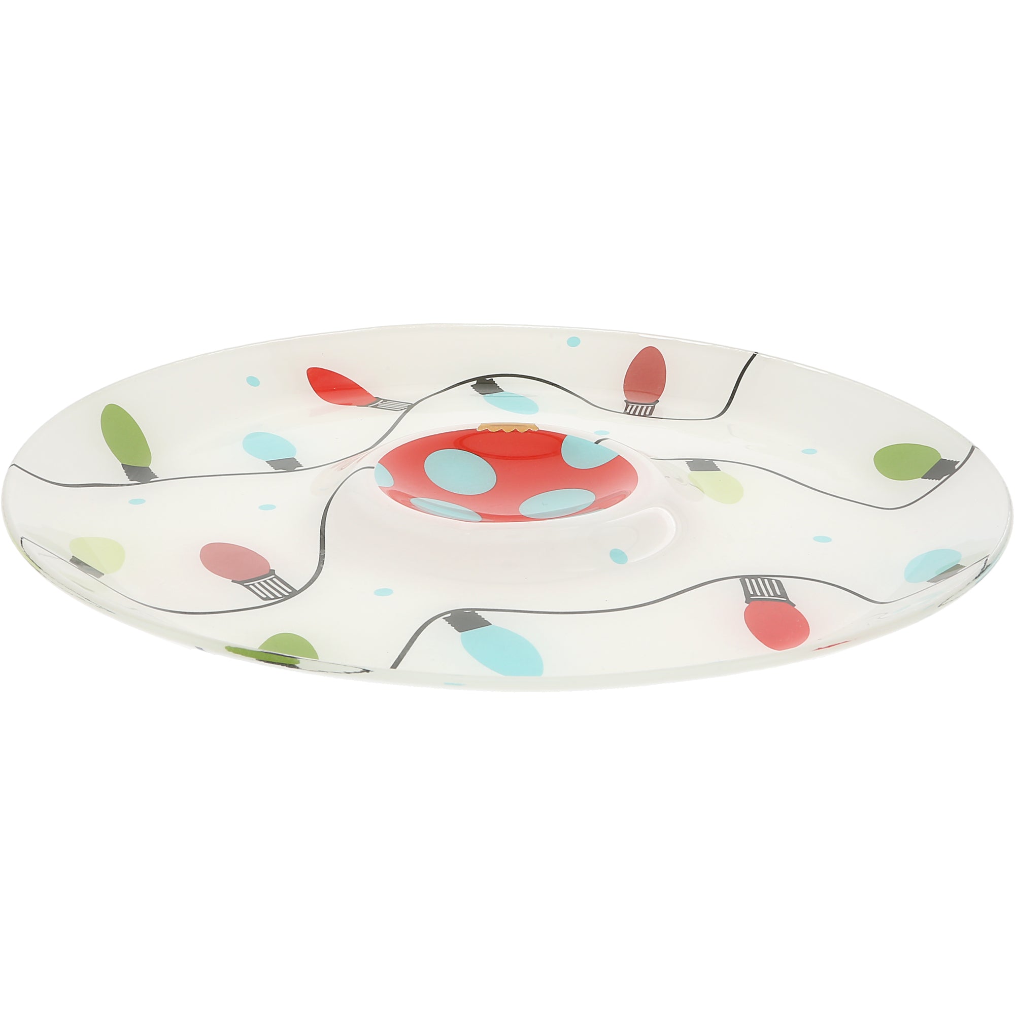 - IN-HOUSE DESIGN: The in-house design of this holiday platter and bowl set brings the festive spirit of Christmas to your table. Decorated with colorful string lights and bold red ornaments with teal polka dots, the set captures a classic holiday charm. The platter features strings of lights, while the bowl showcases a matching ornament. The glossy front enhances the vibrant colors, and the matte back adds an elegant contrast, making this set a festive and functional addition to any holiday meal.