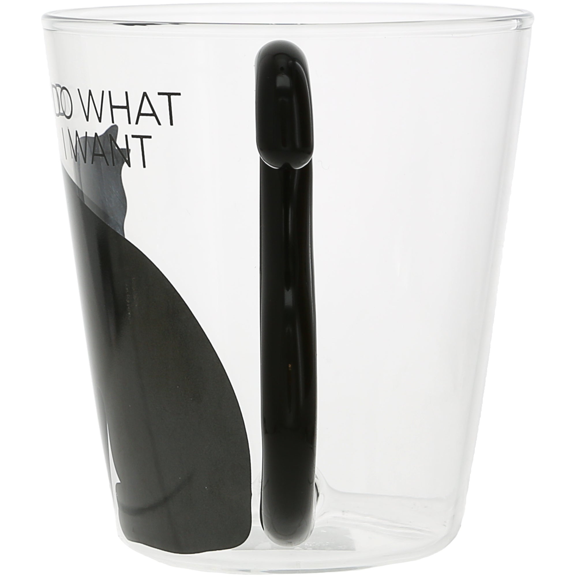 • IN-HOUSE DESIGN: The silhouette of the sitting cat is licking its paw, and it is black, as is the tail handle. The black "I Do What I Want" sentiment is placed above the cats back. The remainder of the glass is clear.