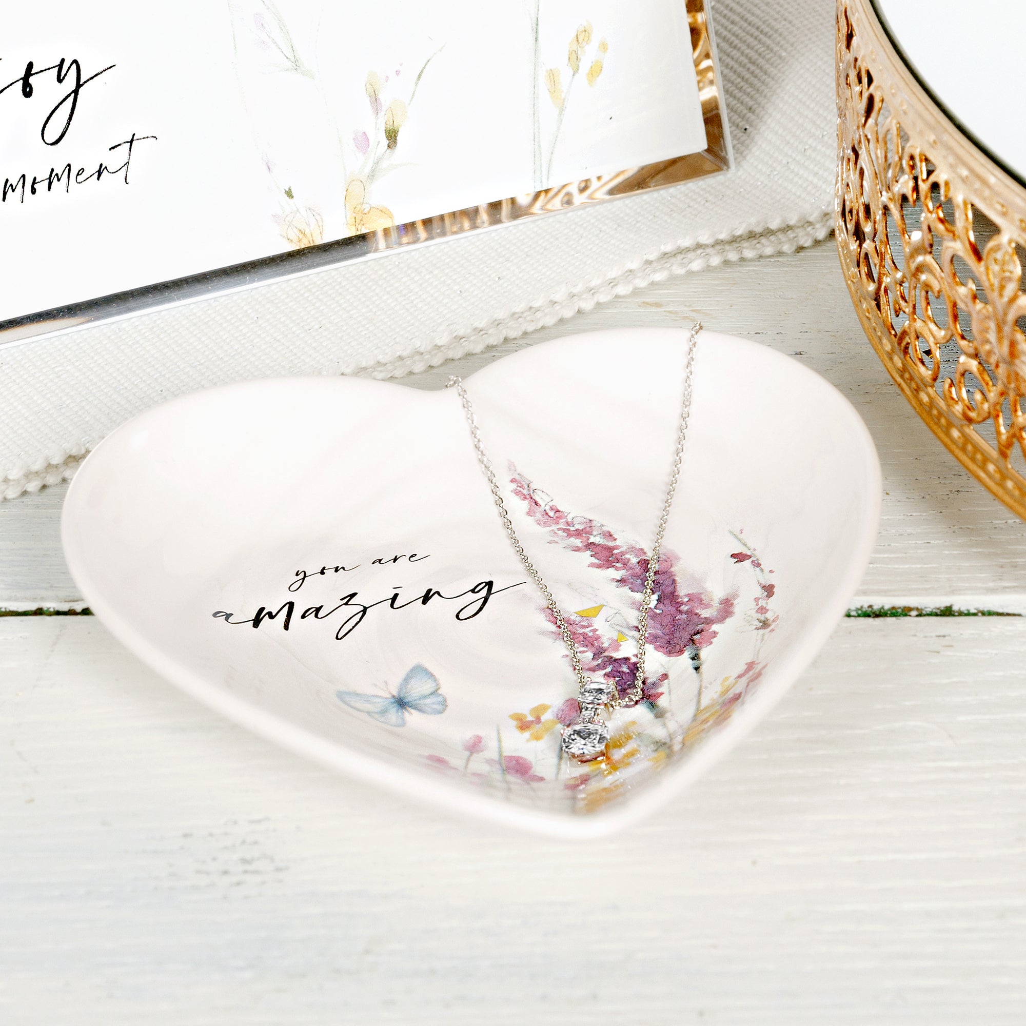 - IN-HOUSE DESIGN: The top cushion gem is 5 mm, the center round gem is 2 mm, and the largest cushion gem at the bottom is 7 mm. Each gem is set with four prongs and connecting loops. The cubic zirconia gems are clear in color. The header card has a beautiful floral water-colored design created by Blue Chair Blessings alongside the sentiment "You Are Amazing."