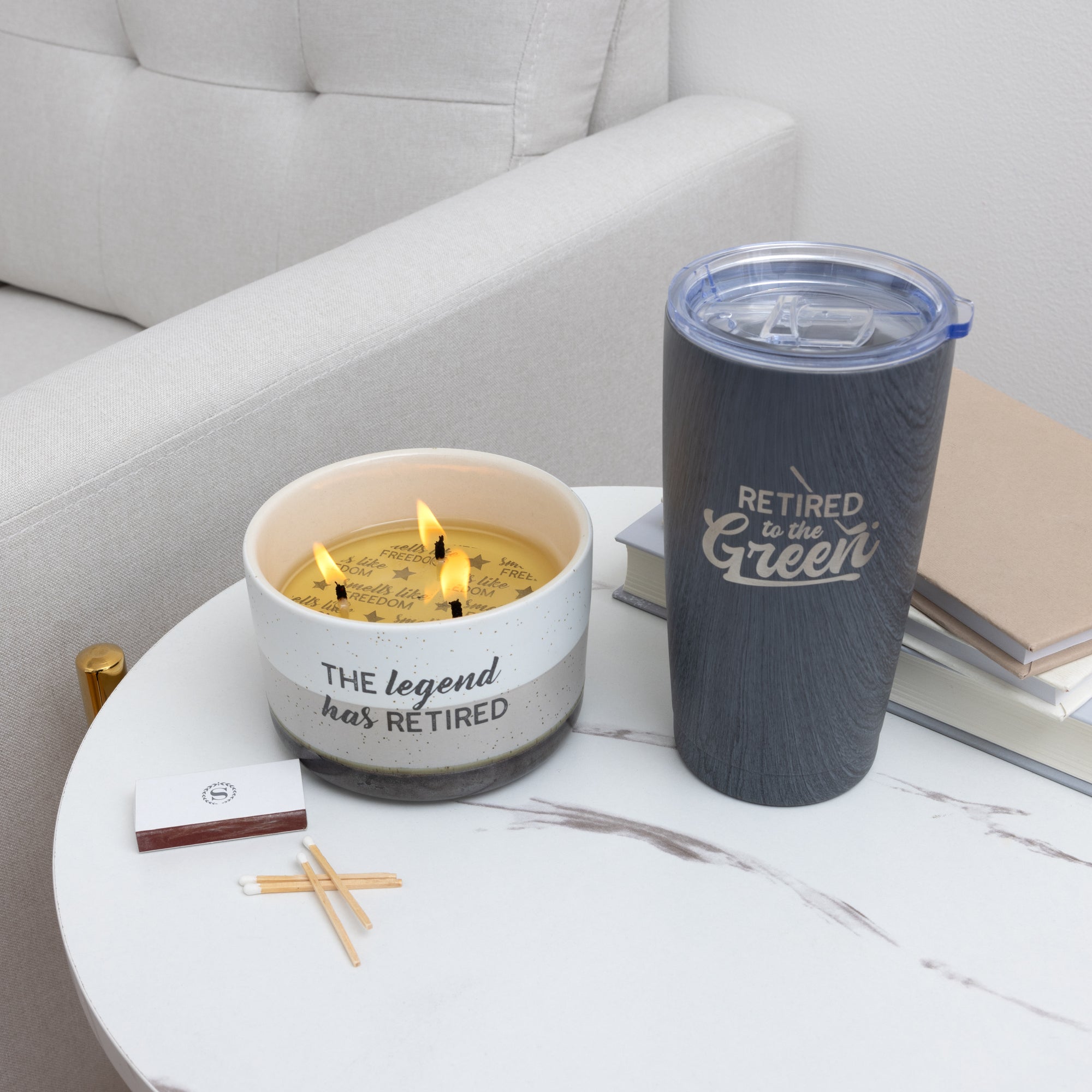 - IN-HOUSE DESIGN: The front side of the coffee, tea, and hot cocoa drinkware tumbler has the silver engraved sentiment "Retired To The Green" with a ball and club silhouette. The bottom backside also has an engraved "Retired Life" logo.