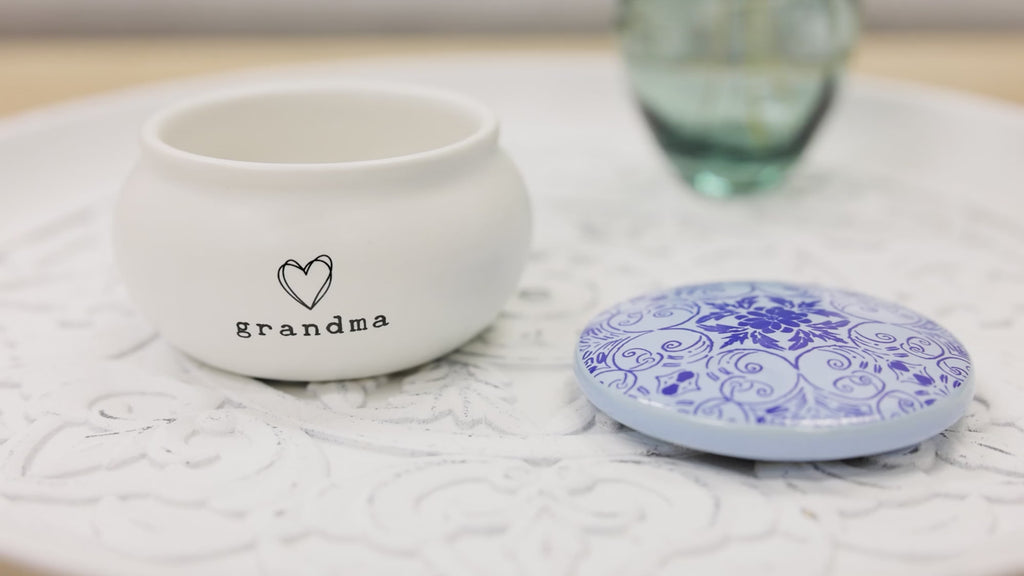 - IN-HOUSE DESIGN: The dish's lid has a simplistic "Grandma" decal and a double-line heart. At the same time, the interior features a butterfly, accompanied by a "You Are Amazing” sentiment that hugs the bottom of the jar.