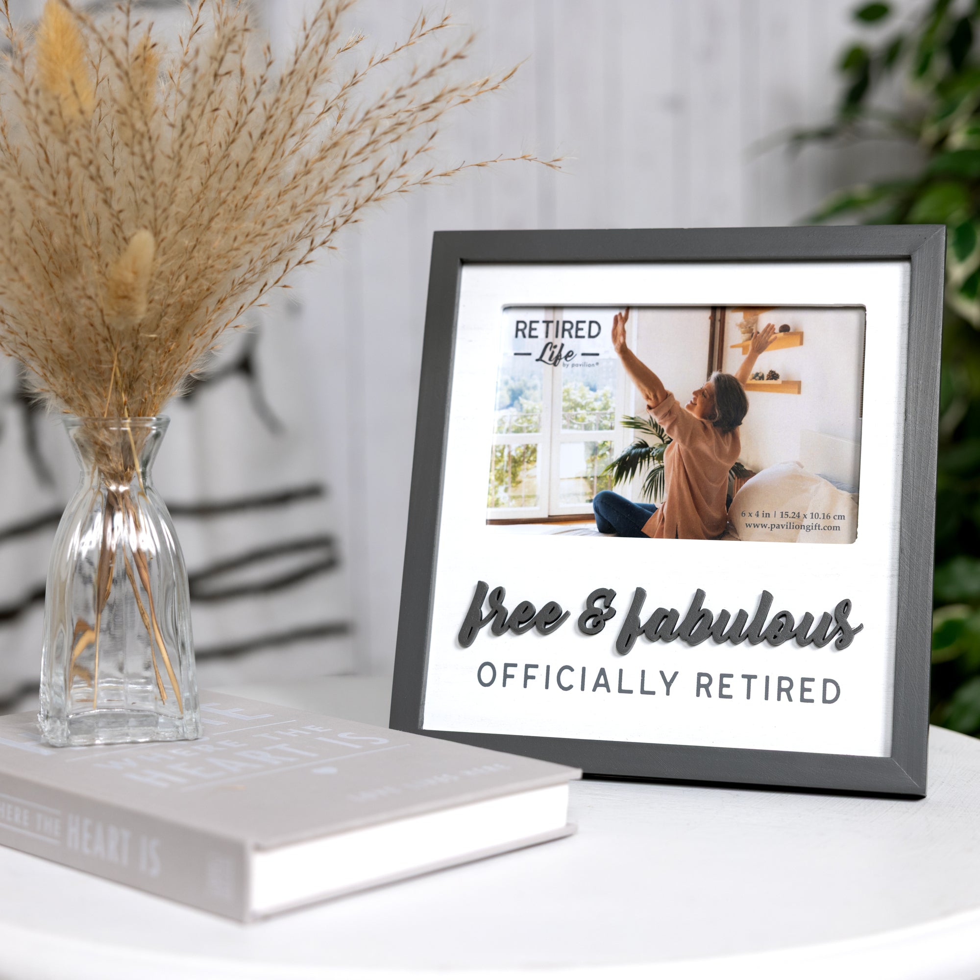 - IN-HOUSE DESIGN: The upper mat features the printed text: “RETIRED Life”, while the lower portion reads: “free & fabulous” in a raised wood cut-out, followed by “OFFICIALLY RETIRED” in sleek printed font. All elements are styled in complementary tones, creating a clean, modern look with celebratory flair.