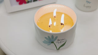 - IN-HOUSE DESIGN: The new & innovative candle offers a unique message for your loved one within the wax as time progresses. You will see the fluttering pink butterflies after about 10 minutes. As you watch, the entire decal will appear after 60 minutes. Then, the message will hide again and reappear with each burn. The front of the candles has a simplistic "Forever My Friend" decal accompanied by a large blue flower matte white finished exterior and a glossy blue wrap-around polka dot pattern on white interior walls.