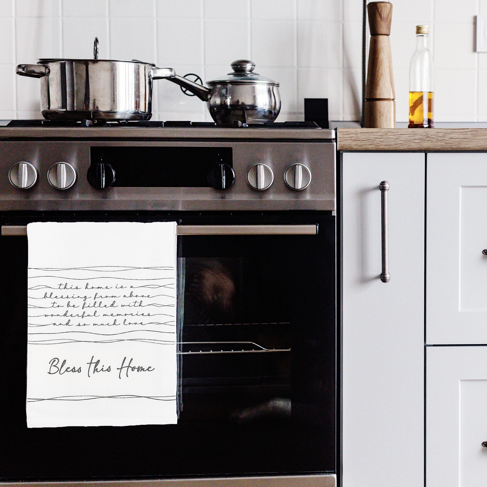 - IN-HOUSE DESIGN: The towel showcases a heartfelt message in delicate black script: "This home is a blessing from above to be filled with wonderful memories and so much love," with "Bless this home" beneath it. The uplifting sentiment adds a spiritual and comforting touch to any space, while the simple line art complements a variety of decor styles. Perfect for your kitchen or dining area, this towel serves as a beautiful reminder of the love and blessings that fill your home.