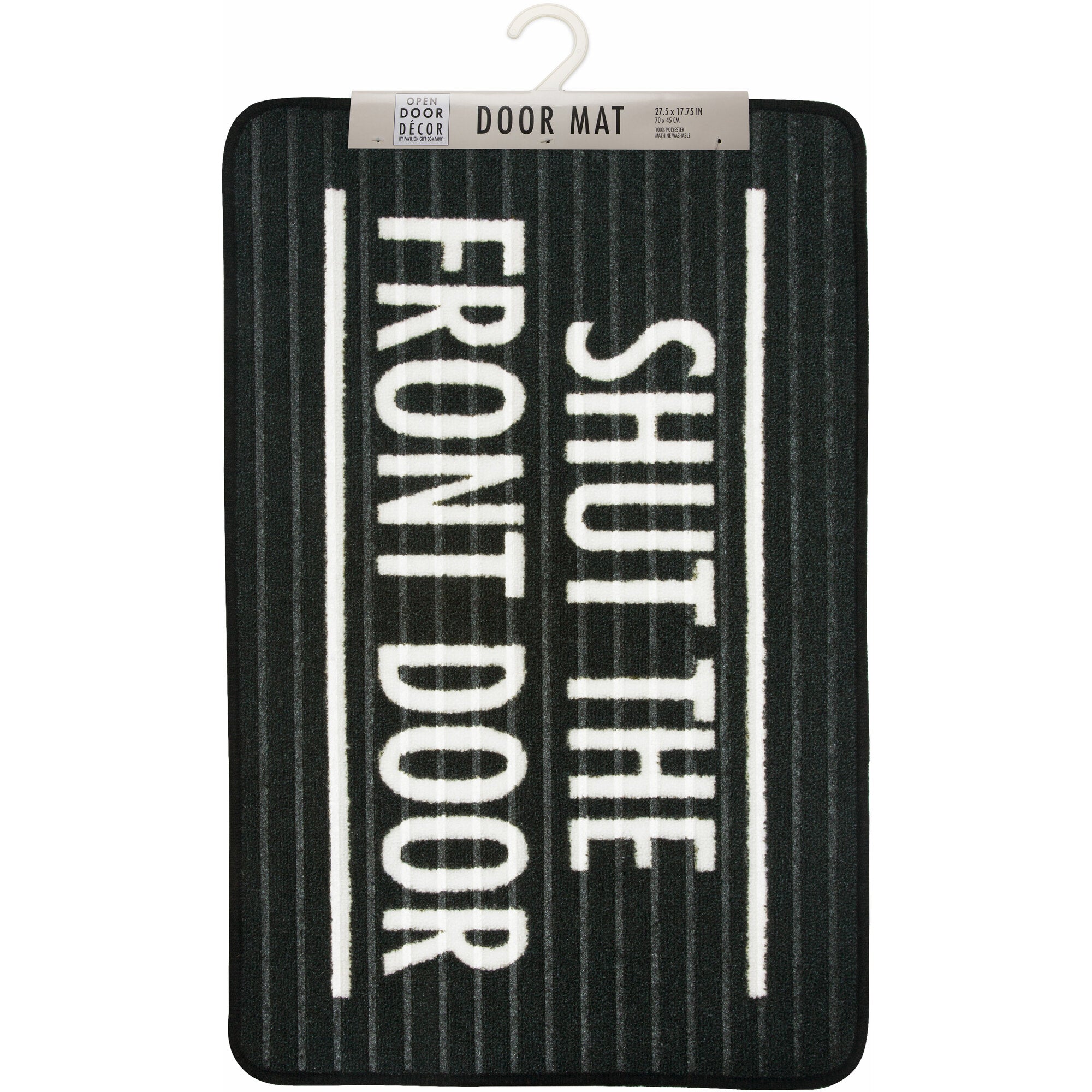 - IN-HOUSE DESIGN: "Shut The Front Door" text is sewn-in to the floor mat.
