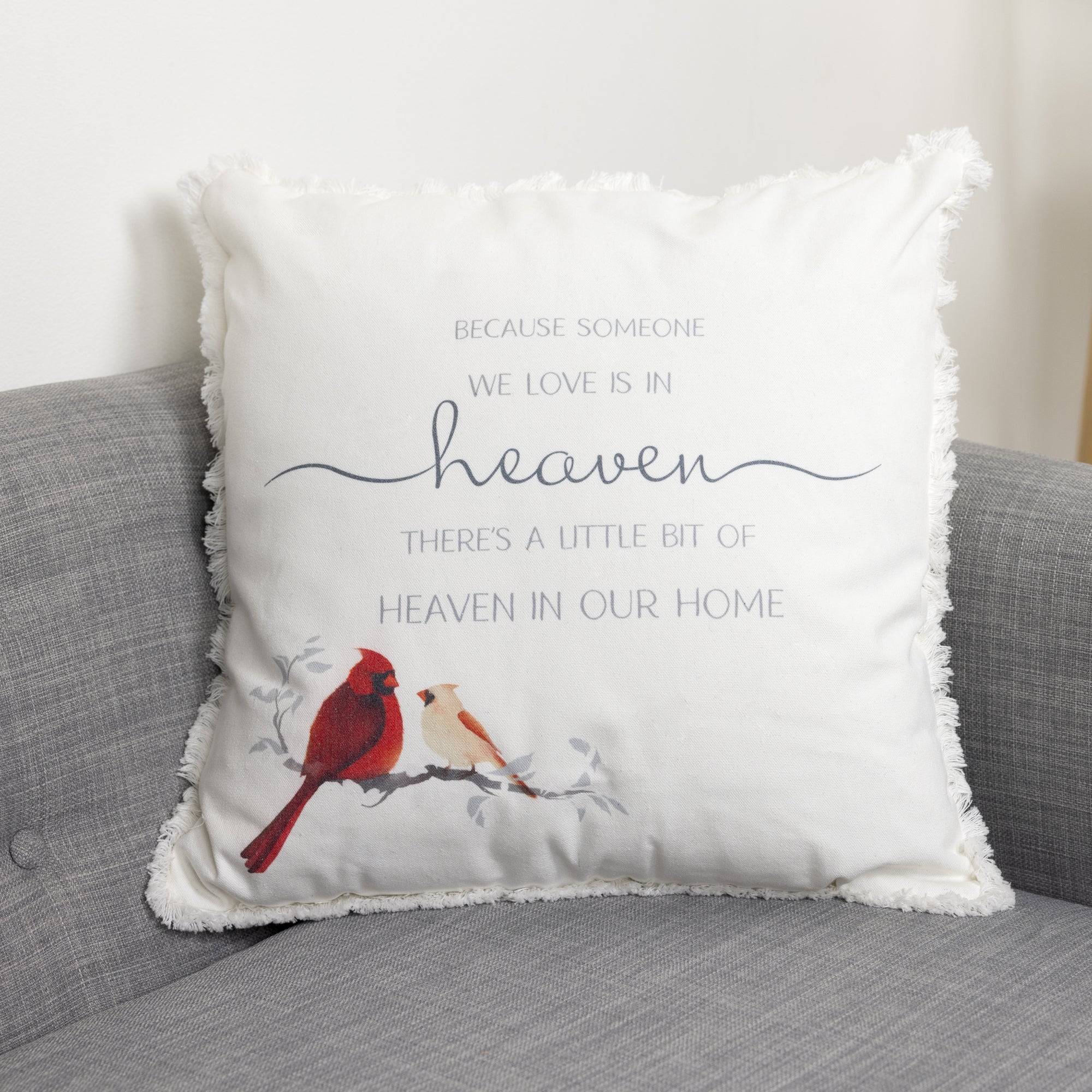 - IN-HOUSE DESIGN: A touching design on the front side, showcases a serene pair of red cardinals perched on a delicate cherry blossom tree branch. The accompanying sentiment, "Because Someone We Love Is In Heaven, There’s A Little Bit Of Heaven In Our Home," is elegantly screen printed in soothing gray. This lovely piece serves as a reminder of the presence of angels & comfort during difficult times. The high-quality materials & meticulous craftsmanship is a meaningful & cherished item for home.
