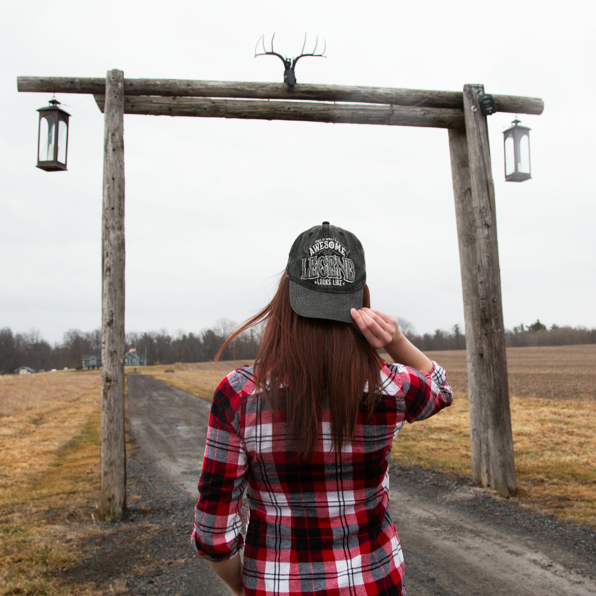 - PREMIUM QUALITY: This black washed adjustable hat is made from 100% cotton, offering durability and comfort. The hat features premium embroidery and patchwork with the sentiment "Awesome Legend Looks Like..." in bold white and gray thread. The interior brim is screen printed with a "limited edition" sentiment.