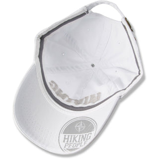 - IN-HOUSE DESIGN: "Hiking People" text is embroidered and sewn-in with a frayed edge, as is the We People logo on the side of the hat. The brim features screen-printed text showing the "Hiking People" logo.