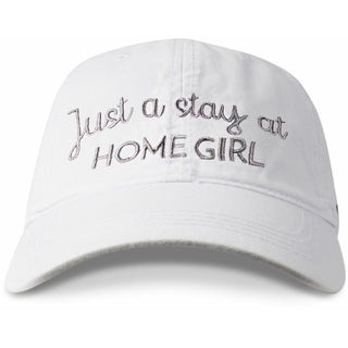 • IN-HOUSE DESIGN: "Just A Stay At Home Girl" text is embroidered on the front of the hat, as is the My Kinda Girl logo on the side. The brim features screen-printed "Home Girl" text.