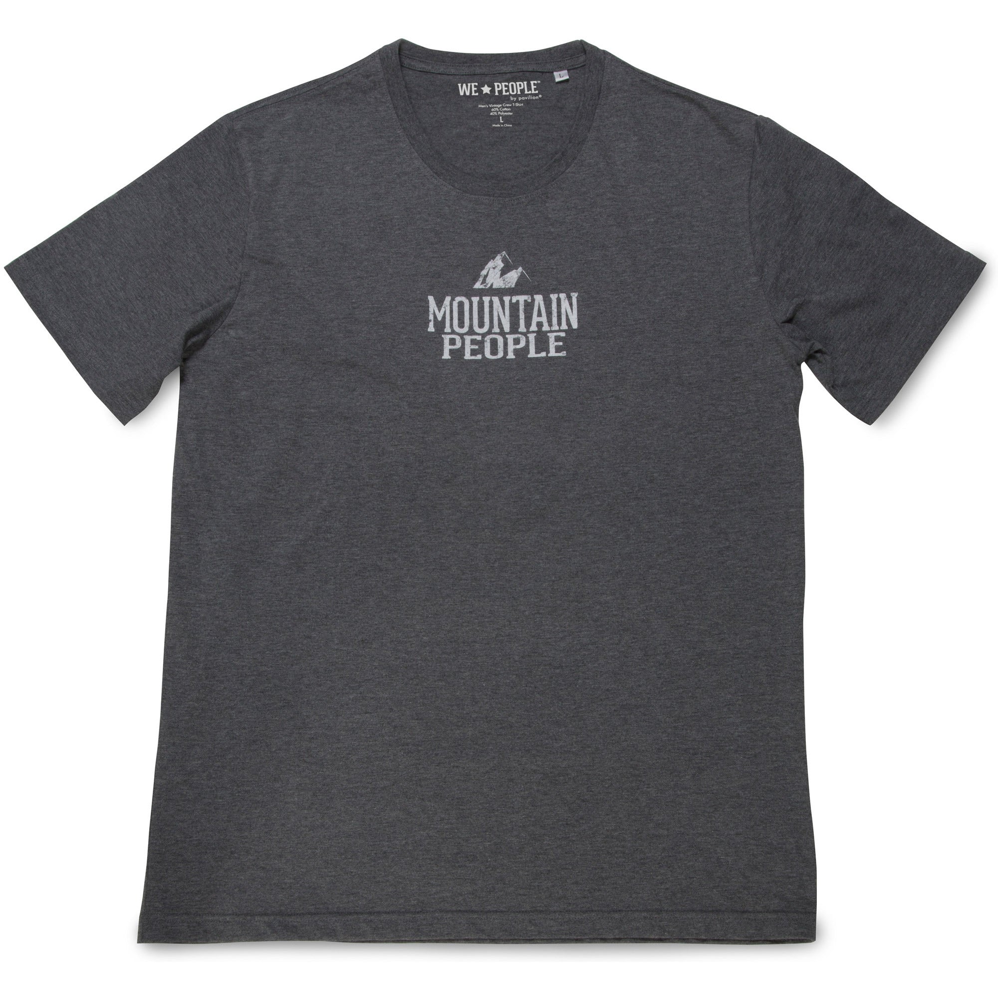 • IN-HOUSE DESIGN: "Mountain People" text and logo are printed on the front of the shirt.