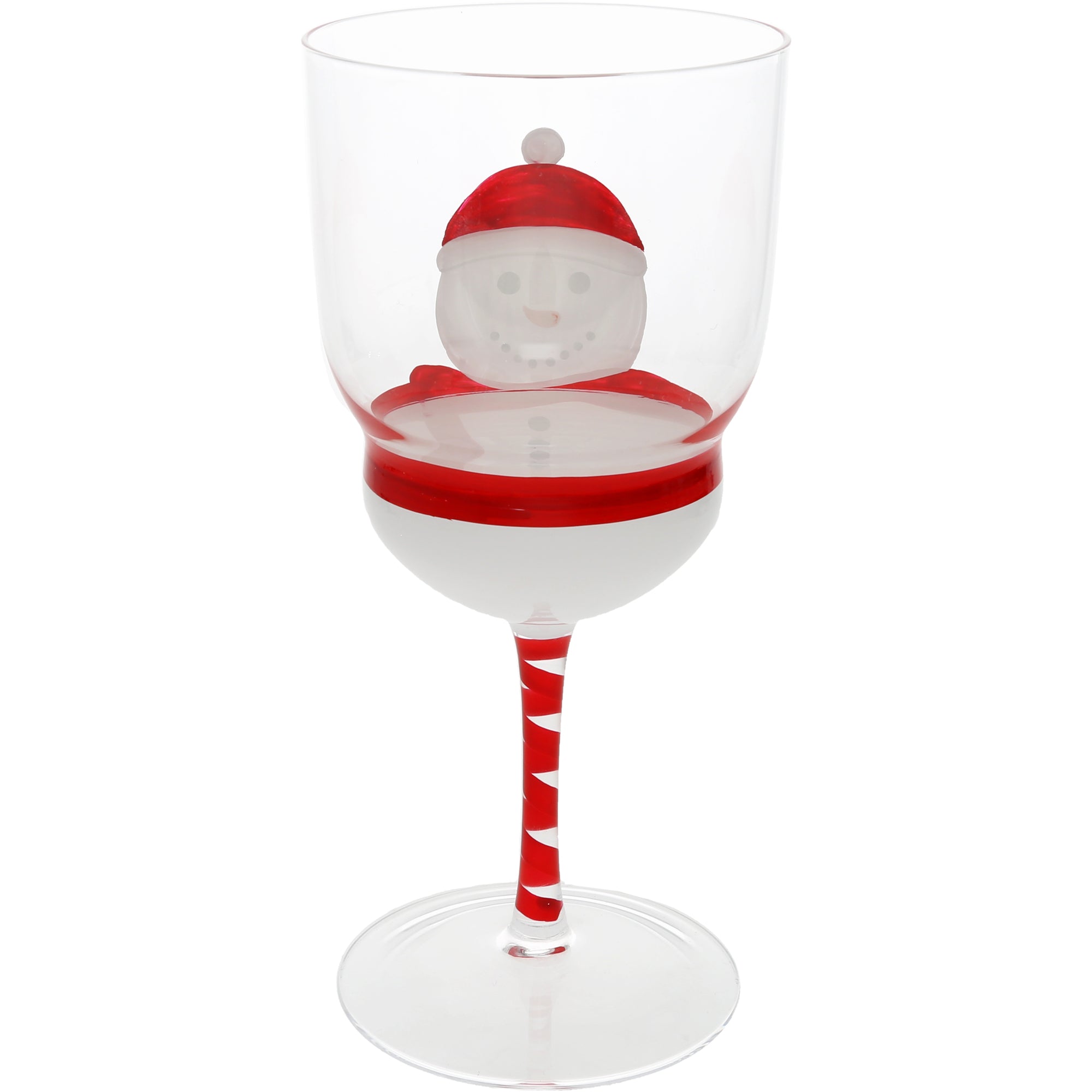 • PREMIUM QUALITY: This 15oz wine glass is constructed with durable glass. The adorable snowman on the front is created by hand with iridescent paint for an extra glimmer as you hold the glass. The eyes, mouth, and buttons are all tactile and give a distinct texture. Each glass is adorned with a festive candy cane striped stem that leads you down to the elegant snowflake charm that dangles at the bottom. These glasses are sure to add festive charm to your home.