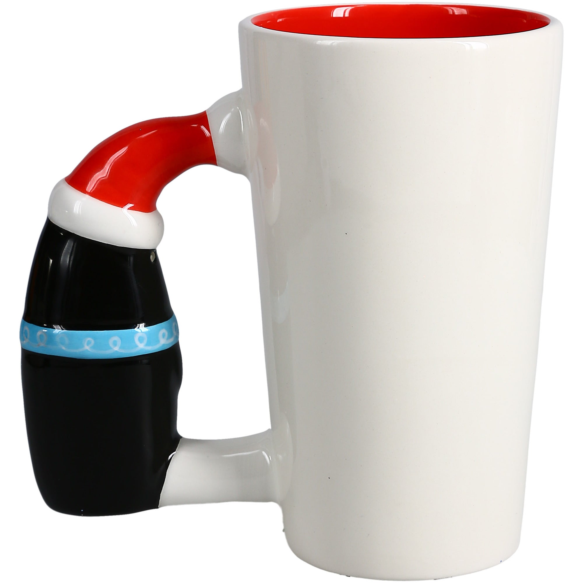 • IN-HOUSE DESIGN: Features a debossed text decal on the front of the mug and a flat decal featuring a penguin ice skating in the snow. The penguin-shaped handle has a 3d look, feels all the way around, and is hand-painted. The interior is red. These mugs come packaged in a protective die-cut box.