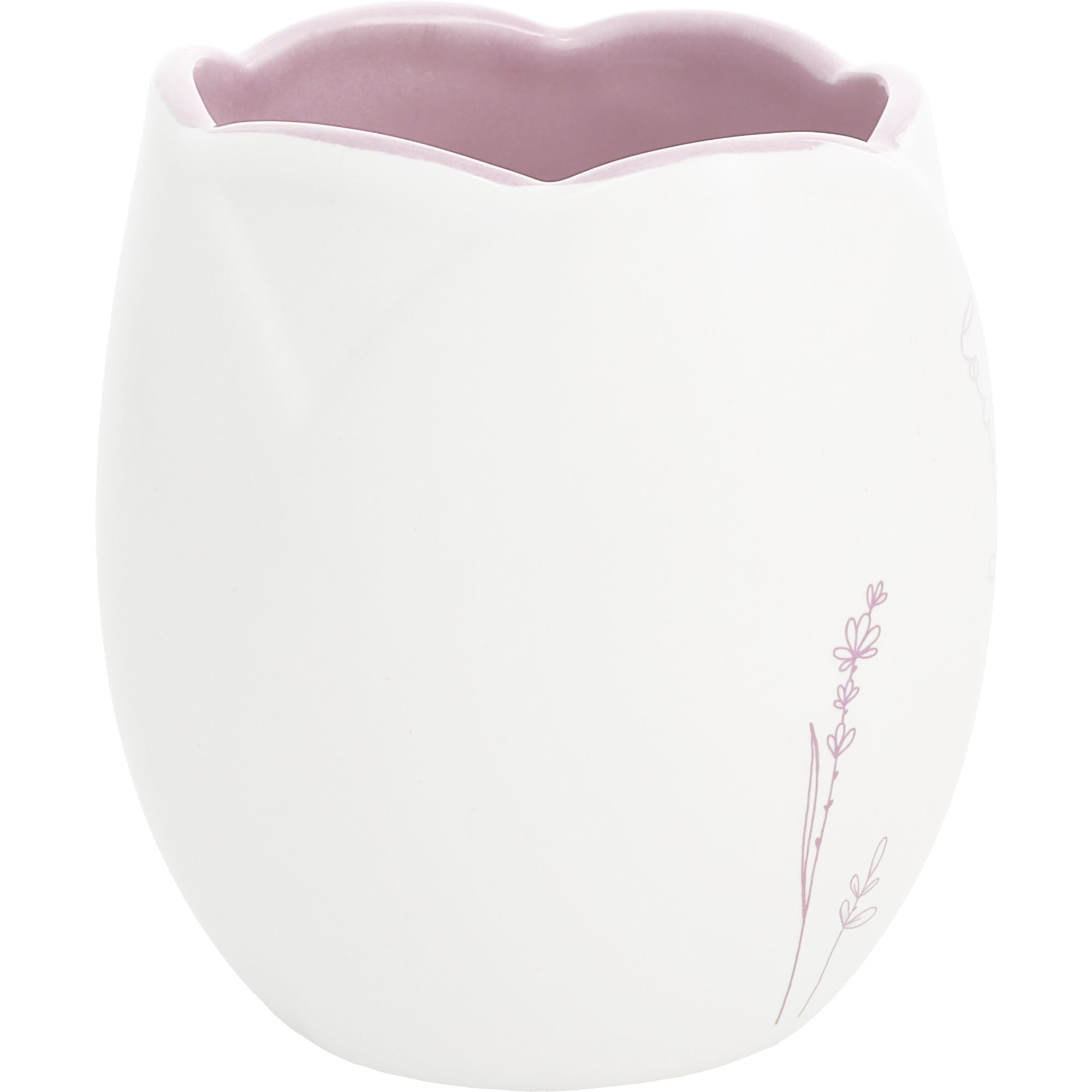 - IN-HOUSE DESIGN: The white stoneware vessel is adorned with elegant raised decal artwork featuring the phrase "Beautiful You" in a delicate script, accompanied by a simple floral design. The soft lavender interior glaze enhances its soothing aesthetic, making it perfect for any space that needs a peaceful and stylish touch.