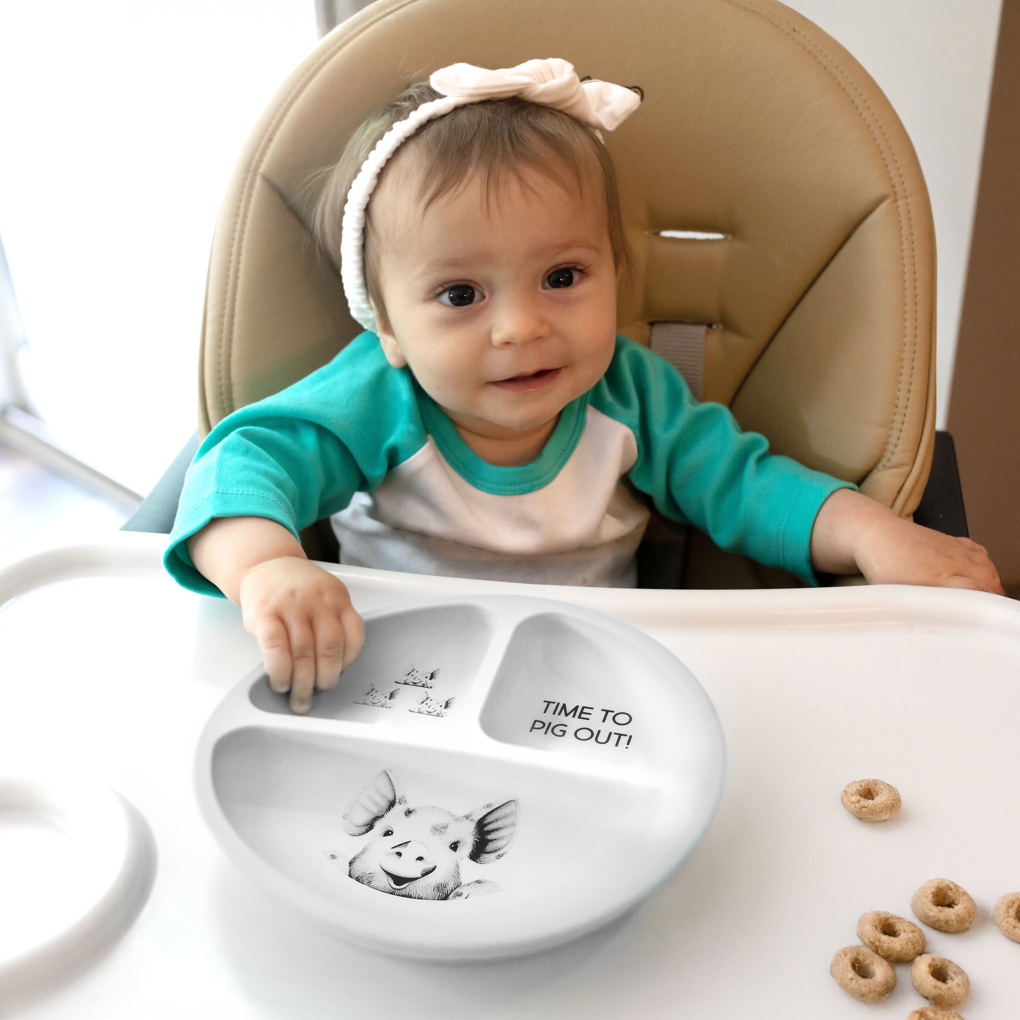 - IN-HOUSE DESIGN: The plate features an adorable pig illustration accompanied by the humorous caption “Time to Pig Out!” The playful design keeps children entertained while promoting a positive and engaging dining experience. The printed decal ensures long-lasting quality.
