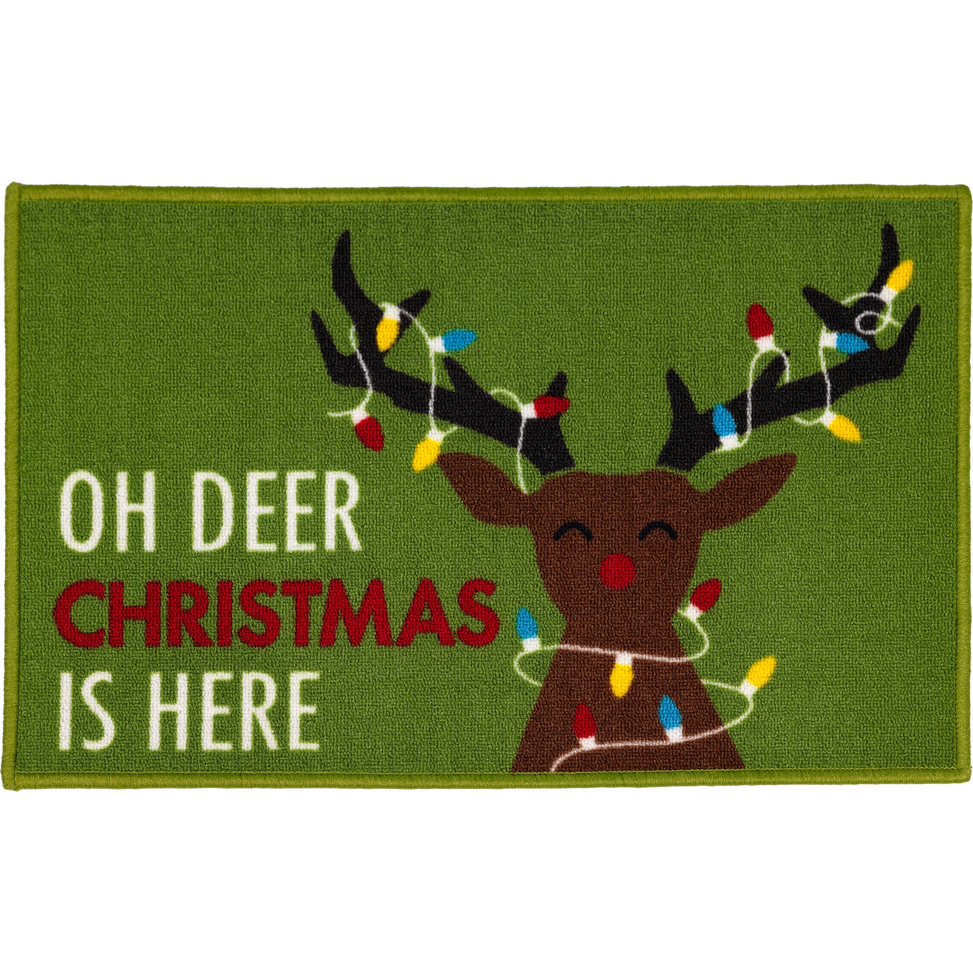 - IN-HOUSE DESIGN: Stepping foot into a home and being greeted by "Oh Deer Christmas Is Finally Here" with a wrapped string of red, yellow, and blue string lights intertwined among the reindeer antlers, red nose, and white and red text is the best way to celebrate the Christmas, winter, and holiday seasons.