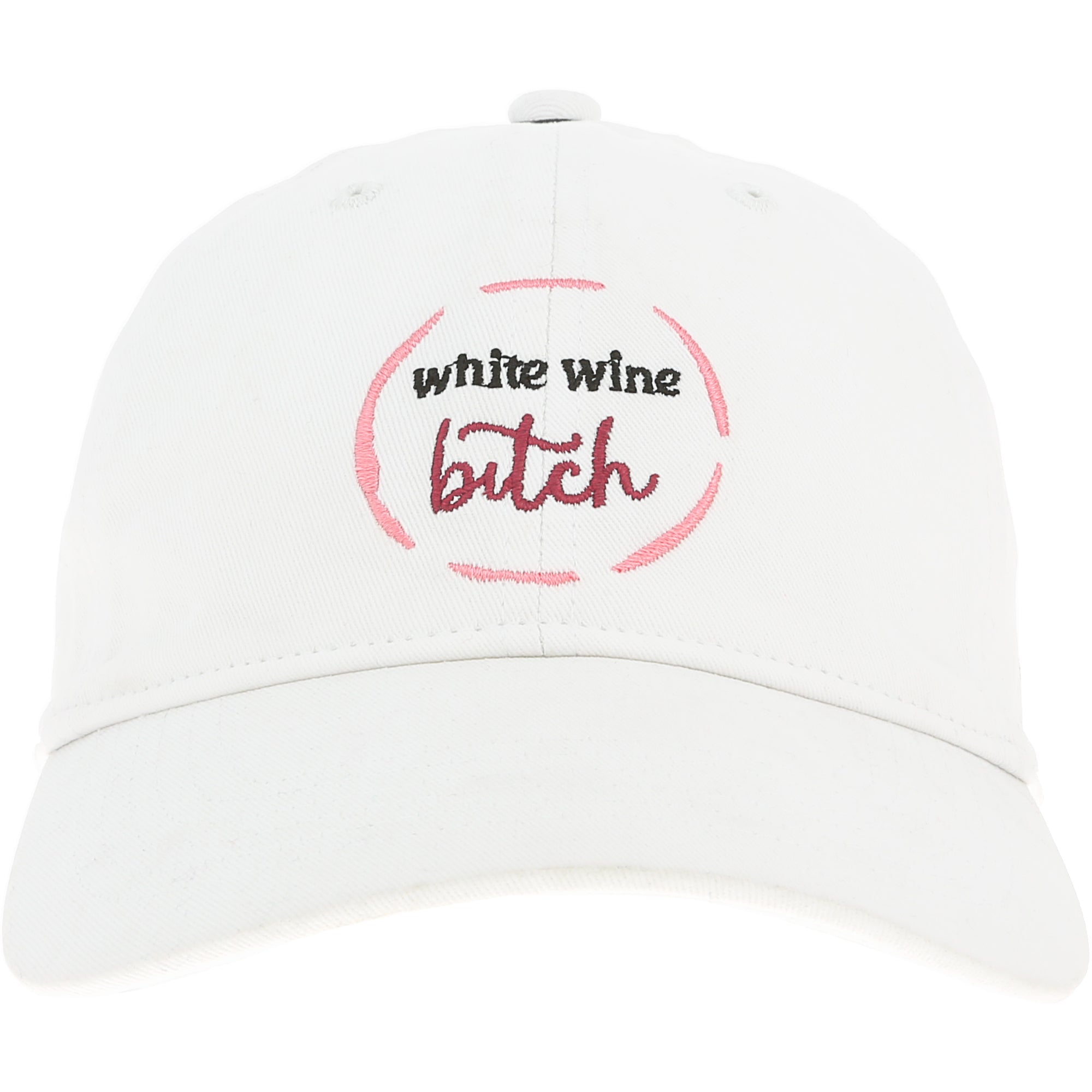 - IN-HOUSE DESIGN: The distress white hat has a blush wine spill outline with "White Wine Bitch" black and pink sentiment that are both embroidered. The side of the hat also features an embroidered glass of white wine.
