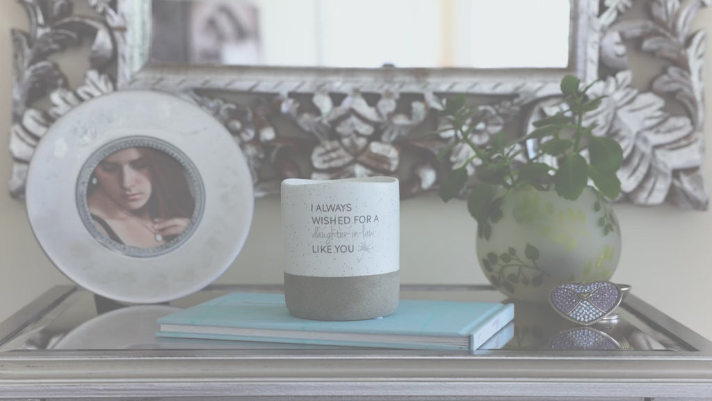 • IN-HOUSE DESIGN: The new & innovative candle offers a unique message for your loved one within the wax as time progresses. You will begin to see the black dandelion and "Amazing Daughter-In-Law" sentiment after about 10 minutes. As you watch, the entire decal will appear after 50 minutes. Then, the message will hide again and reappear with each burn. The front of the candles has a simplistic "I Always Wished For A Daughter-In-Law Like You" decal accompanied by a light gray dandelion.