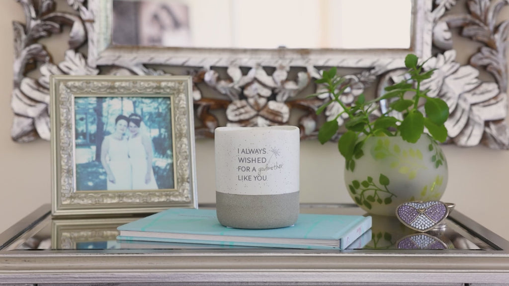 - IN-HOUSE DESIGN: The new & innovative candle offers a unique message for your loved one within the wax as time progresses. You will begin to see the black dandelion and "Amazing Godmother" sentiment after about 10 minutes. As you watch, the entire decal will appear after 50 minutes. Then, the message will hide again and reappear with each burn. The front of the candles has a simplistic "I Always Wished For A Godmother Like You" decal accompanied by a light gray dandelion.
