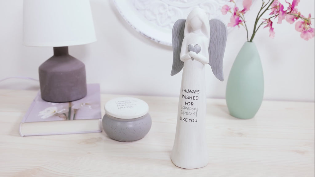 - IN-HOUSE DESIGN: "I Always Wished For Someone Special Like You" sentiment decal is printed with varying light and dark grays with san serif and cursive font combo on the midpoint of the front of the dress. Her faceless and simplistic stature will compliment all decor in anyone's home.