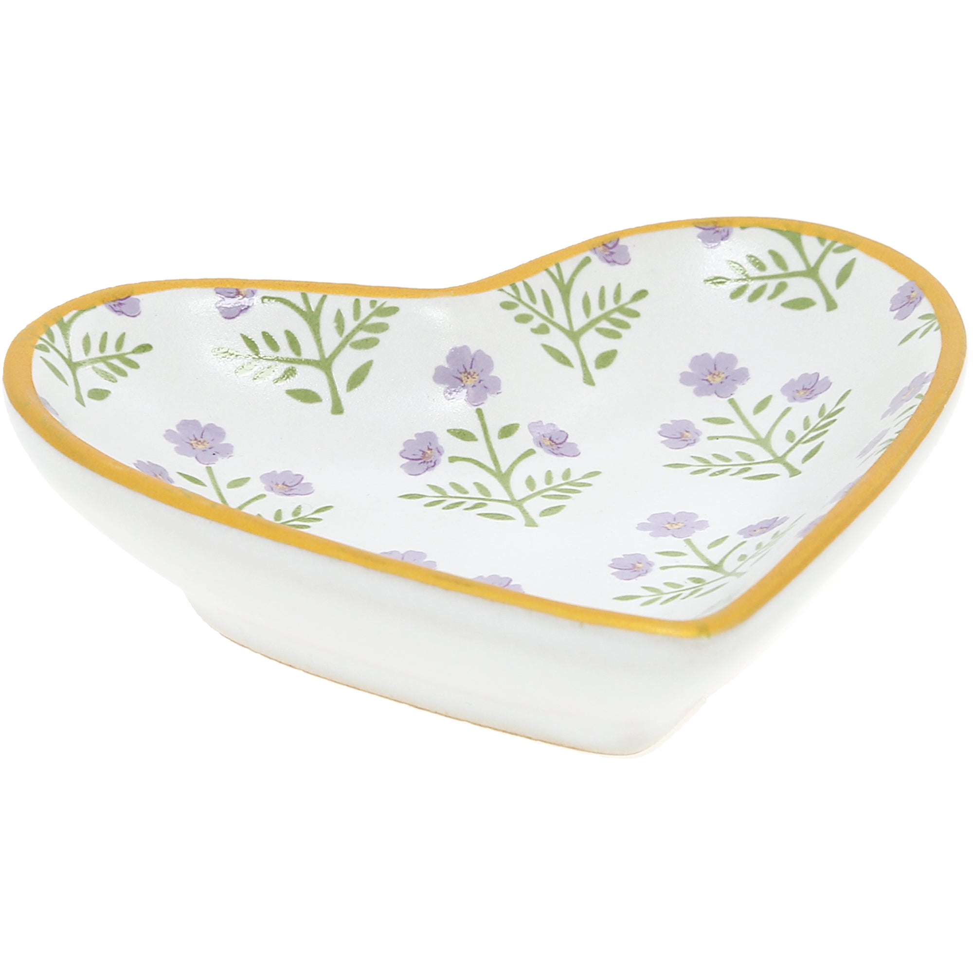 - PREMIUM QUALITY: This elegant 2-piece set includes a heart-shaped trinket dish and a pair of 5mm sterling silver cubic zirconia stud earrings. The dish is made from durable stoneware with a matte white glaze, hand-painted purple floral decals, and a gold-colored rim for added sophistication. The earrings feature hypoallergenic posts and sparkling stones that catch the light beautifully, creating a timeless, heartfelt keepsake.