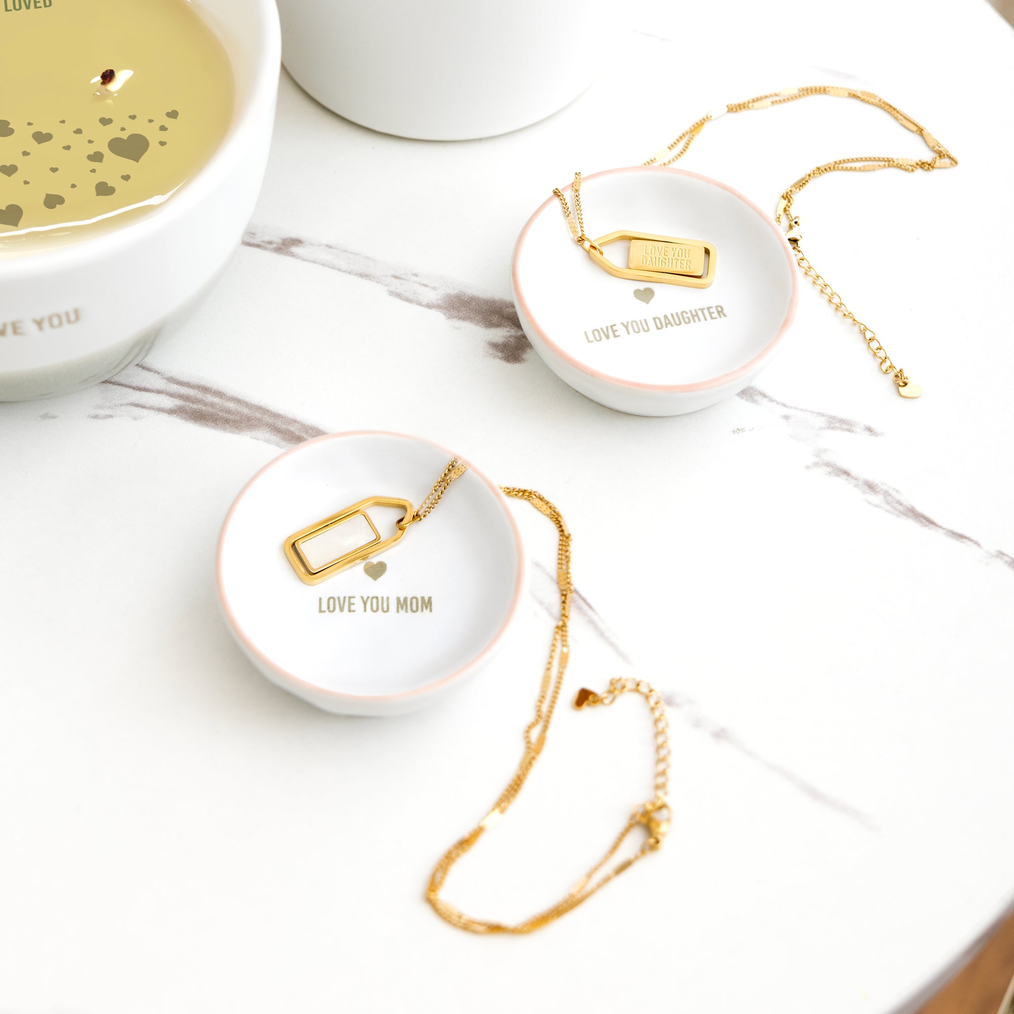 - IN-HOUSE DESIGN: The finish is matte white with a glossy pink brim. The gray "Love You Daughter" glossy risen sentiment is accompanied by a heart.