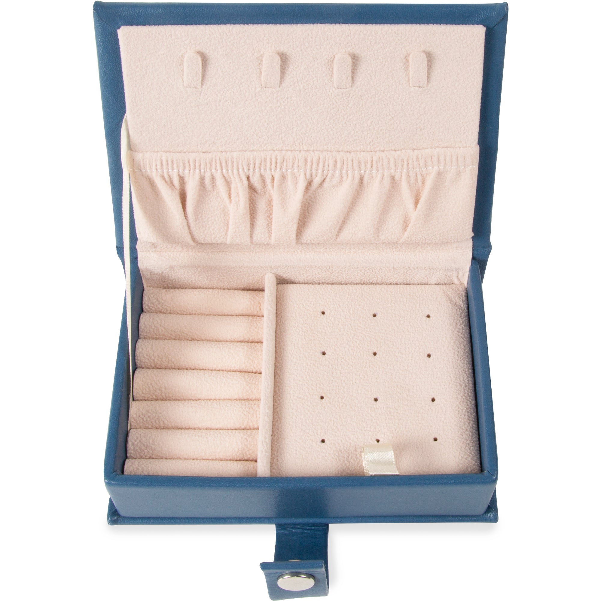 - PREMIUM QUALITY: Jewelry box, packaged securely in a plain box, is made from polyurethane and velvet and features hooks, slots, and a pocket and a snap closure.