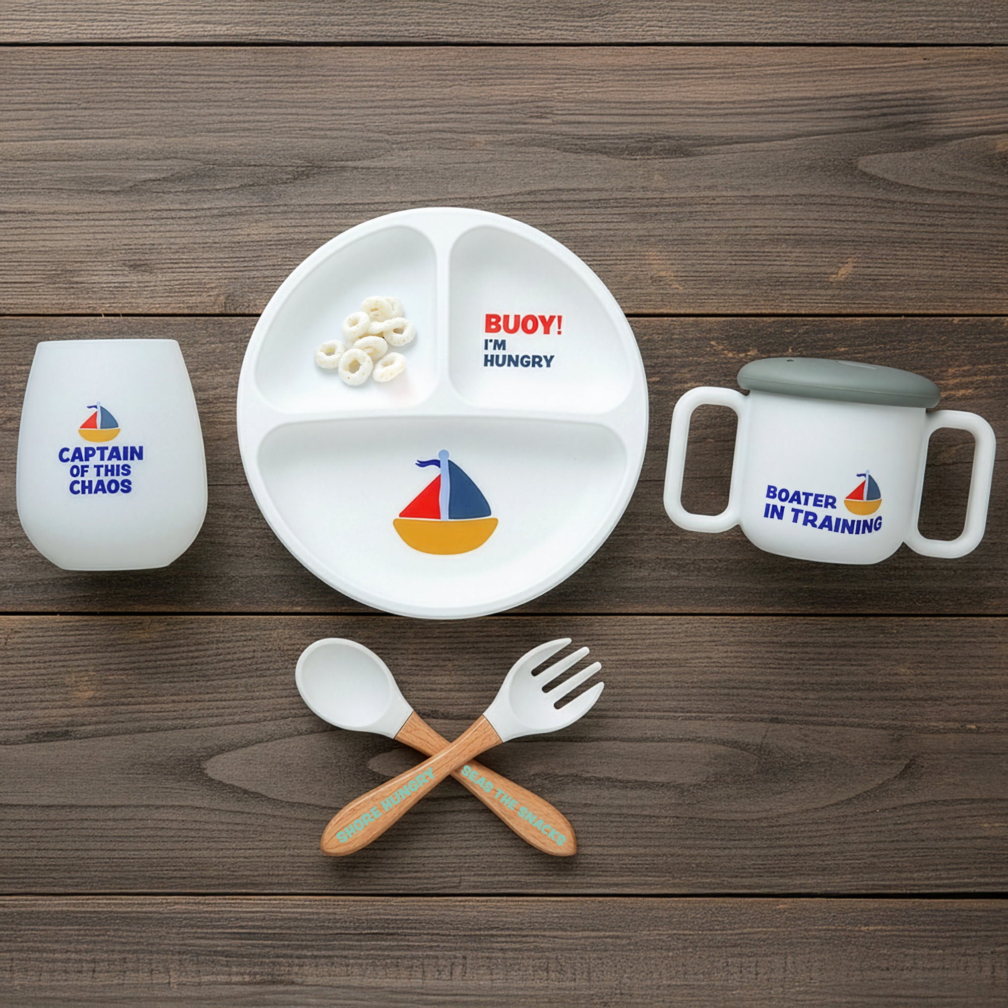 - IN-HOUSE DESIGN: Features a nautical sailboat graphic with coordinating phrases—“Captain of This Chaos” for Mom and “Boater in Training” for little ones. Interior raised artwork elevates the premium feel, while the bright nautical colors add charm to coastal homes.