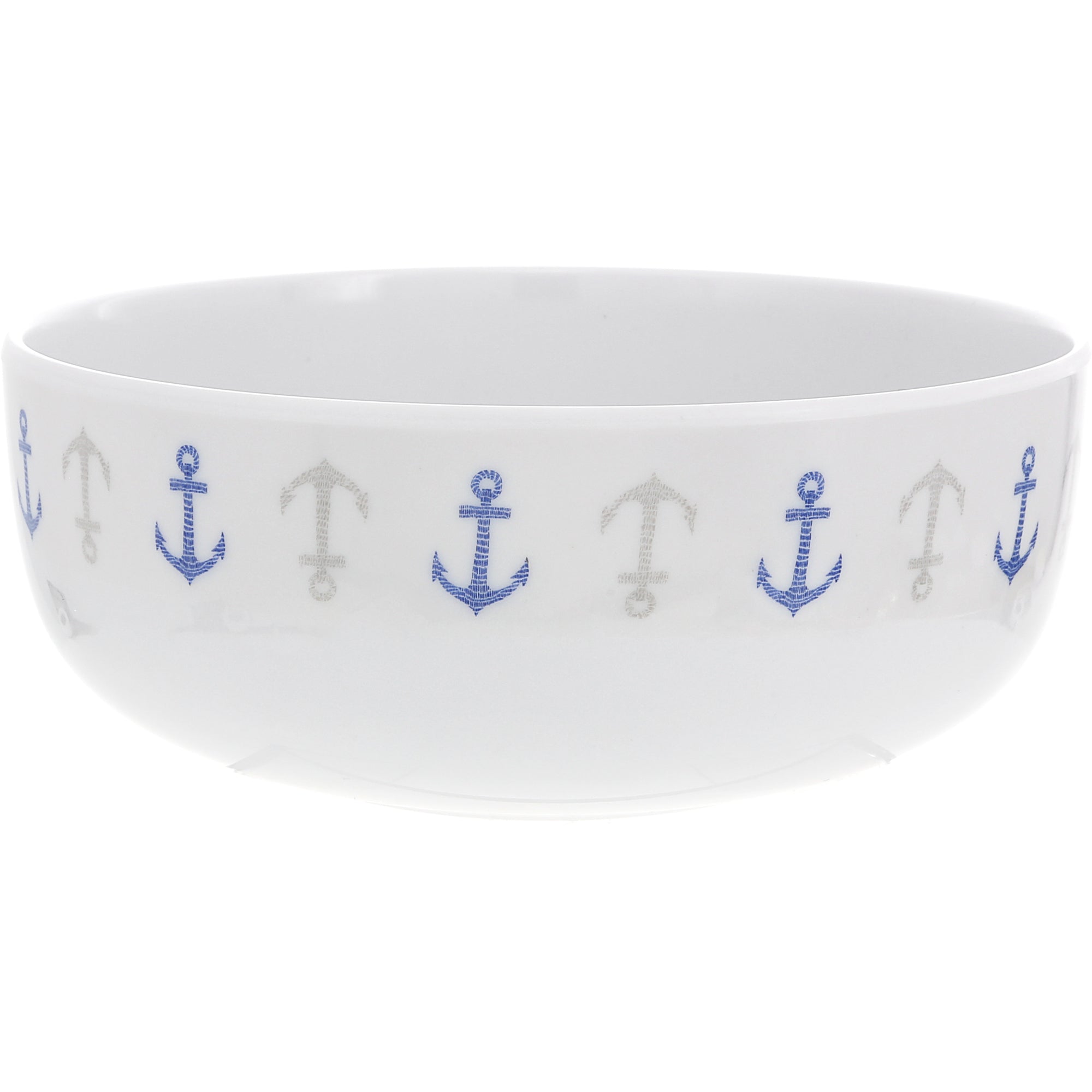 • IN-HOUSE DESIGN: The Lake Melamine Bowls showcase a nautical-inspired design, featuring a series of navy blue anchors and rope details encircling the exterior. This classic maritime theme makes them a perfect addition to any lake house, boat, or coastal-inspired kitchen.