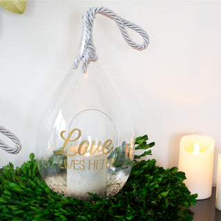 Season's Greetings 9.5" Emerald Beaded Glass Lantern