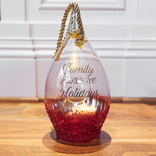 Holiday Family 11.5" Ruby Beaded Glass Lantern