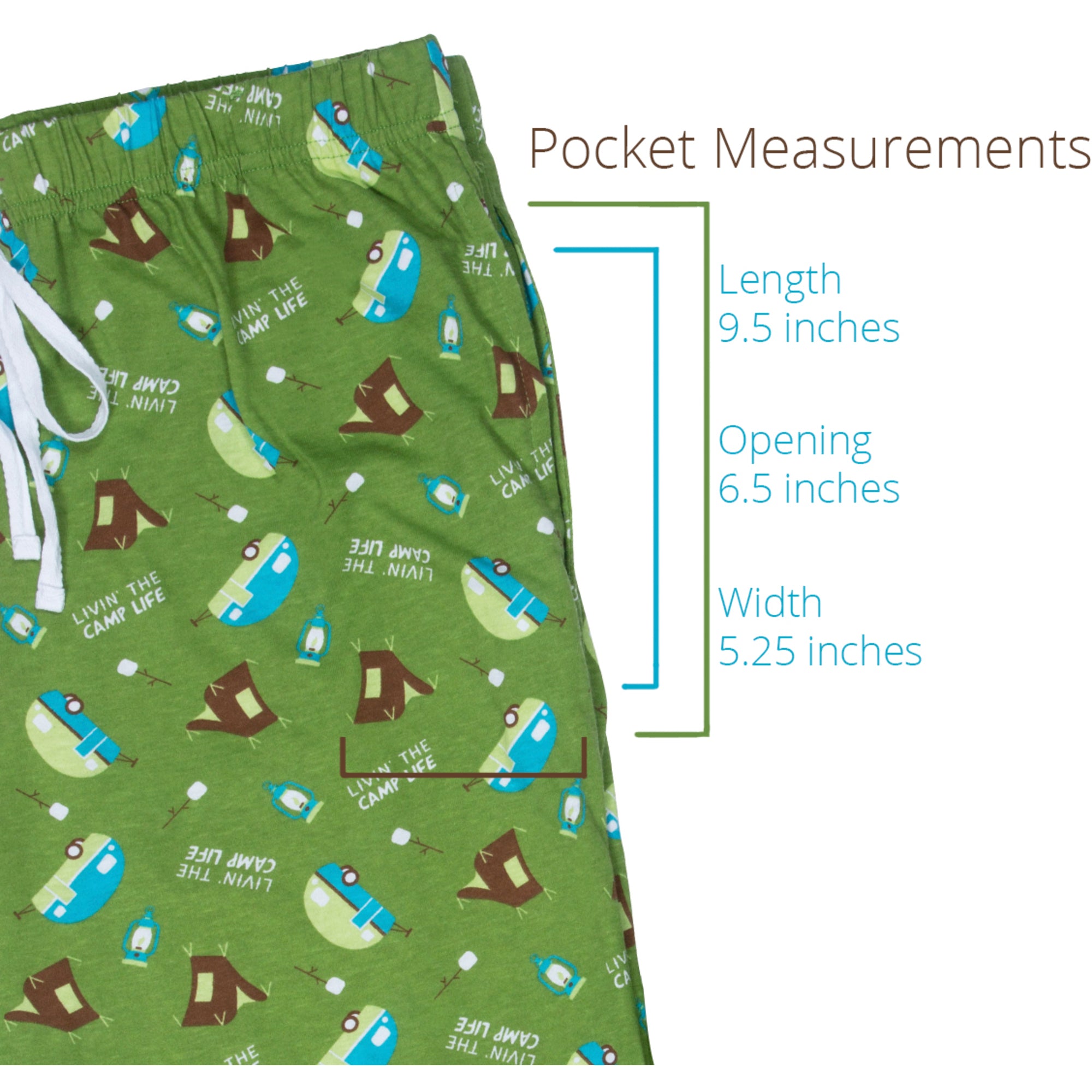 - IN-HOUSE DESIGN: Pattern features campers, tents, lanterns, and marshmallows on a green background.