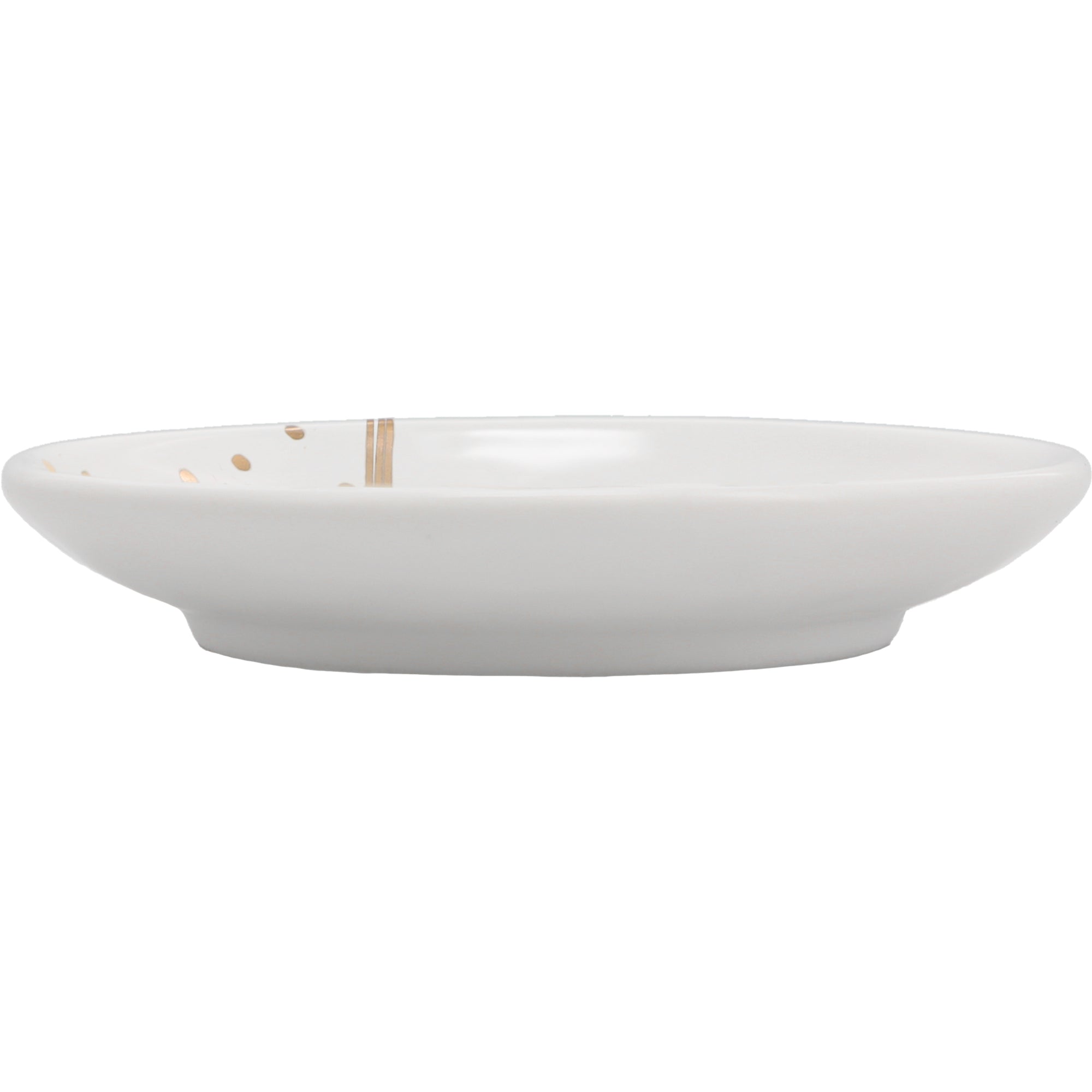 - PREMIUM QUALITY: Small keepsake dish, jewelry holder, or vanity tray is made from stoneware. Measures 4” in diameter. The ideal-sized dish for a necklace, earrings, ring, bracelet, or other small keepsakes. Packaged safely in a black custom die-cut box.
