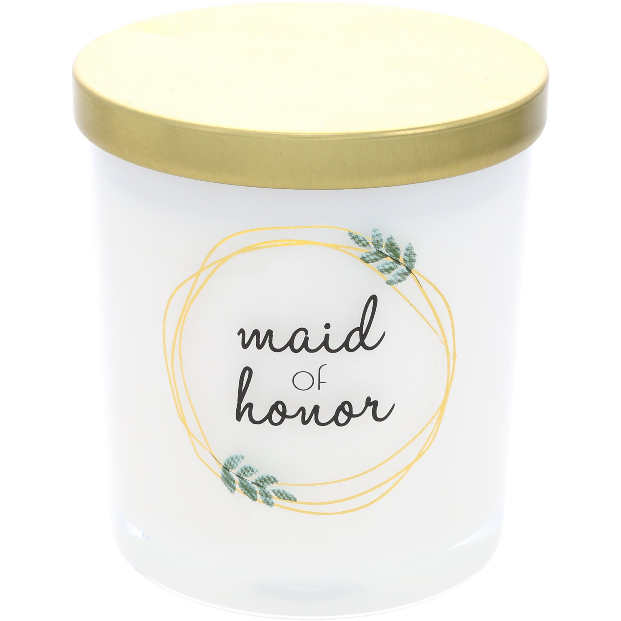 - IN-HOUSE DESIGN: Featuring the sentiment “Maid of Honor” framed by a simple gold wreath design, this candle embodies gratitude and appreciation. The attached tag reads: “Your friendship means the world to me, and I’m so thankful to have you as my maid of honor. I couldn’t imagine this day without you by my side.” Each detail captures love, loyalty, and the importance of shared memories.