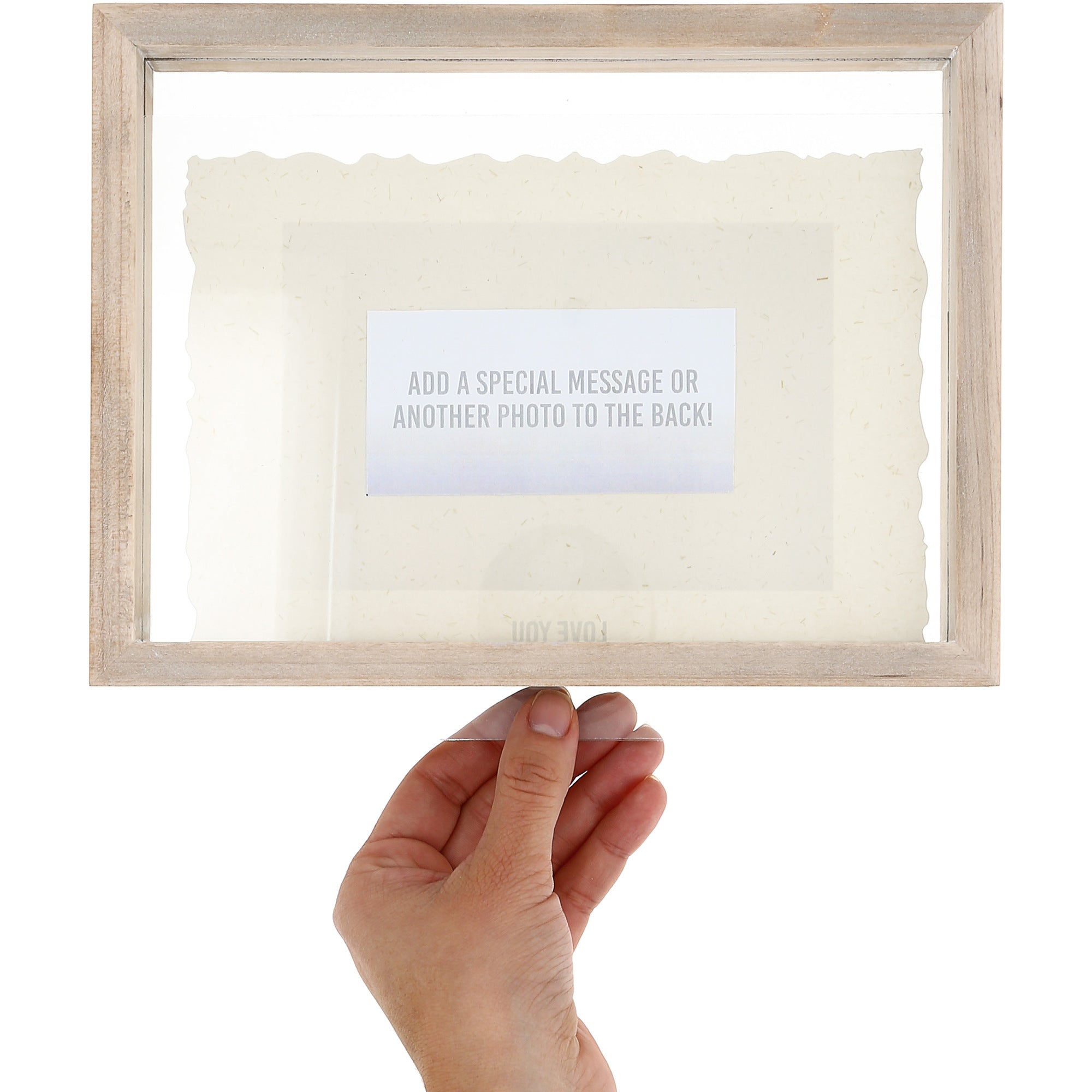 - PREMIUM QUALITY: Constructed with an MDF 9.25" length x 7.25" tall 1.5" thick. The rough edge rice paper sits between two pieces of glass and can hold a single 6" x 4" horizontal portrait image on each side of the paper or two 2" x 3" vertical photos on each side of the paper. A handwritten note can also be added to the backside of the paper instead of another photo. Self-standing or can be hung by the edge of the frame.