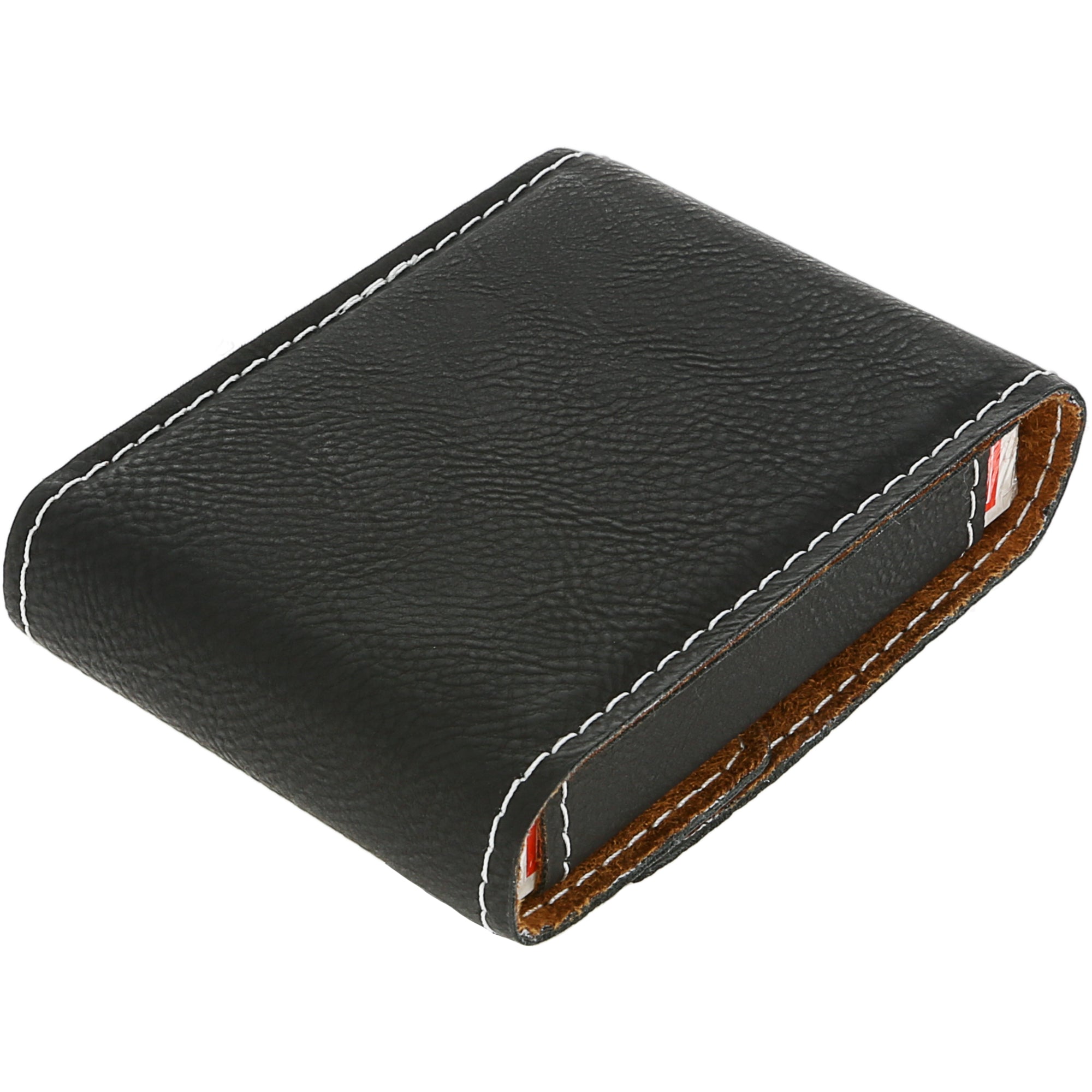 - PREMIUM QUALITY: This compact black playing card holder measures 3 x 3.75 x 1.25" and is crafted from durable polyurethane leather with a velvet interior that protects the cards. The metal snap closure keeps the deck secure, making it easy to carry or store safely.
