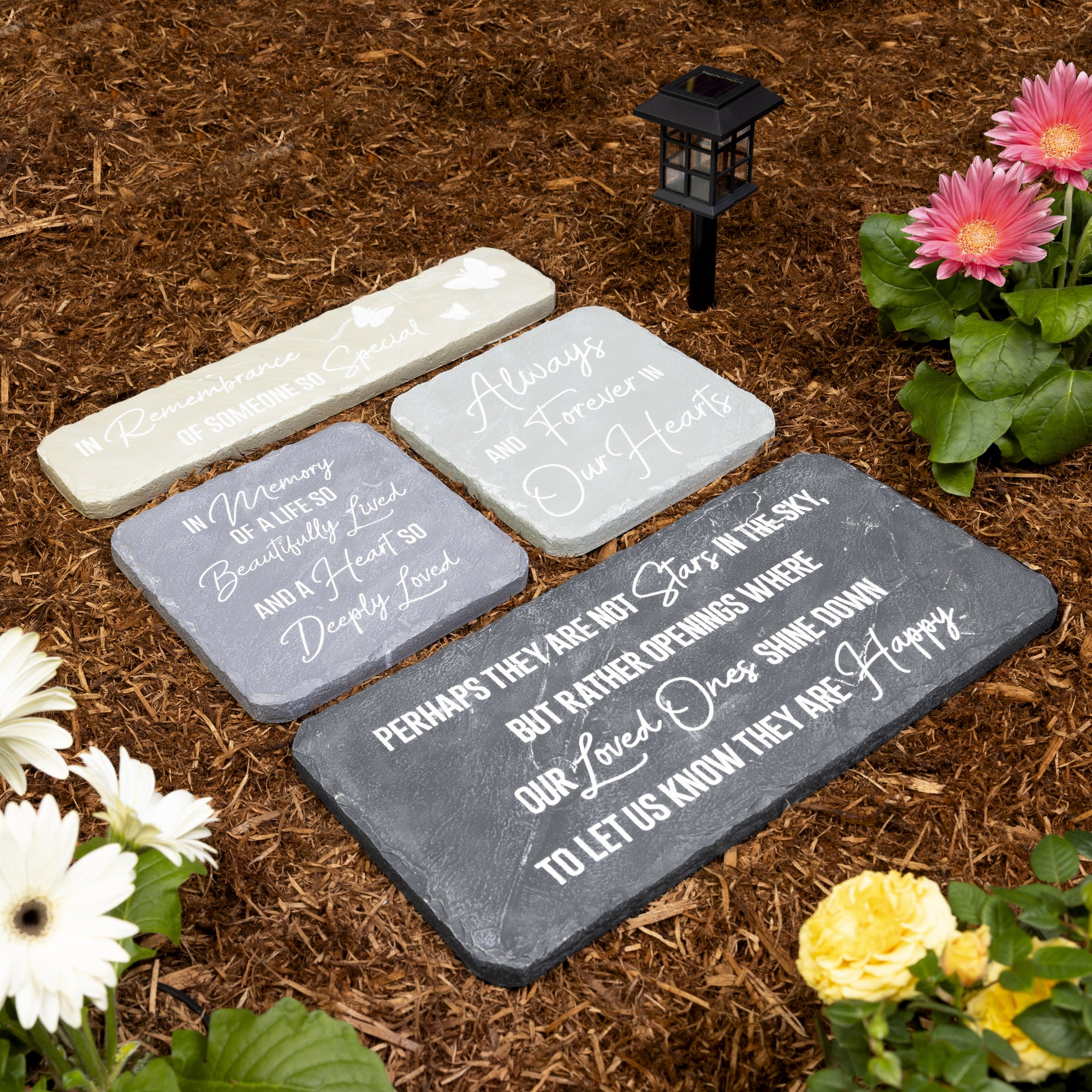 - IN-HOUSE DESIGN: Light gray garden stone with a textured surface and rounded edges, featuring the heartfelt sentiment "Always And Forever In Our Hearts.” This charming stone adds a touch of warmth and love to any outdoor or indoor space, serving as a meaningful reminder of the precious times spent together right within your home.
